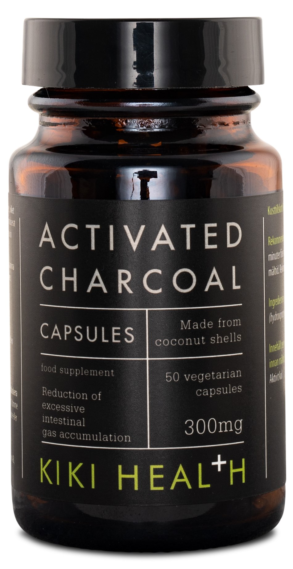 KiKi Health Activated Charcoal Caps ovat kapseleita, jotka sisältävät 300 mg erittäin hienojauhettua aktiivihiiltä. Käytetty hiili tulee kookospähkinöiden kuorista, ja se on jauhettu 5-10 mikrometrin kokoiseksi. Tämä tekee hiilen absorptioalueesta erittäin suuren, jotta se voi tehokkaasti imeä ei-toivottuja aineita. Hiilen kyky imeä muita aineita tekee siitä suositun muun muassa ihonhoitotuotteissa, hammastahnoissa ja hampaiden valkaisussa sekä myrkytysten hoidossa terveydenhuollossa. KiKi Health Activated Charcoal Caps tulee kätevissä kapseleissa, jotka soveltuvat erinomaisesti käytettäväksi, jos haluat helpottaa ruoansulatusta ja vähentää turvotusta aterian jälkeen.