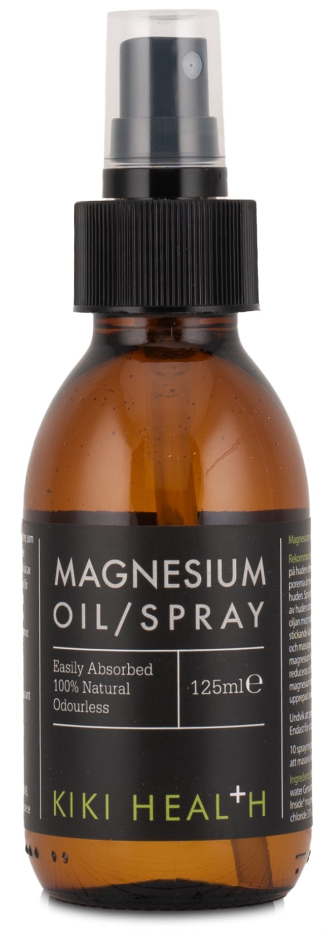 Kiki Healthin Magnesium Oil Spray sisältää magnesiumkloridia, jota suihkutetaan suoraan iholle, josta se imeytyy ja kulkeutuu kehon kaikkiin soluihin. Öljy voi auttaa lihaksia rentoutumaan ja rauhoittumaan ennen nukkumaanmenoa, lievittää lihaskramppeja ja lihaskipuja, ja sitä voidaan käyttää lisäämään kehon magnesiumtasoja. Öljy sisältää vain aitoa Genuine Zechstein™ magnesiumkloridia.