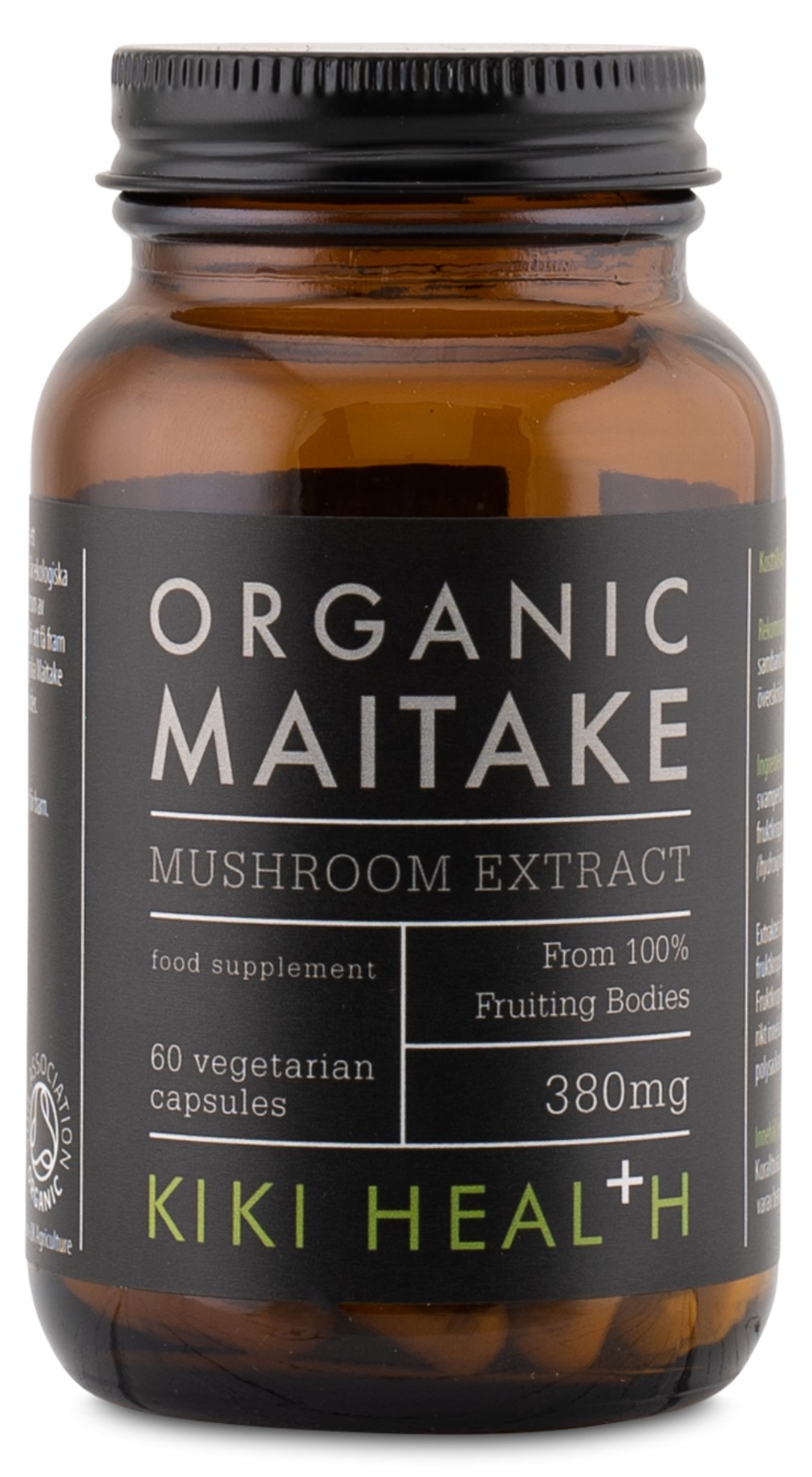 Kiki Health Organic Maitake Mushroom Extract on ekologinen ja puhdas maitakesienen uute. Uute on peräisin ainoastaan sienen itiöemästä, joka on hyvä lähde sienten aktiivisille ainesosille, kuten beetaglukaaneille. Tuote on täysin lisäaineeton ja vegaaninen.