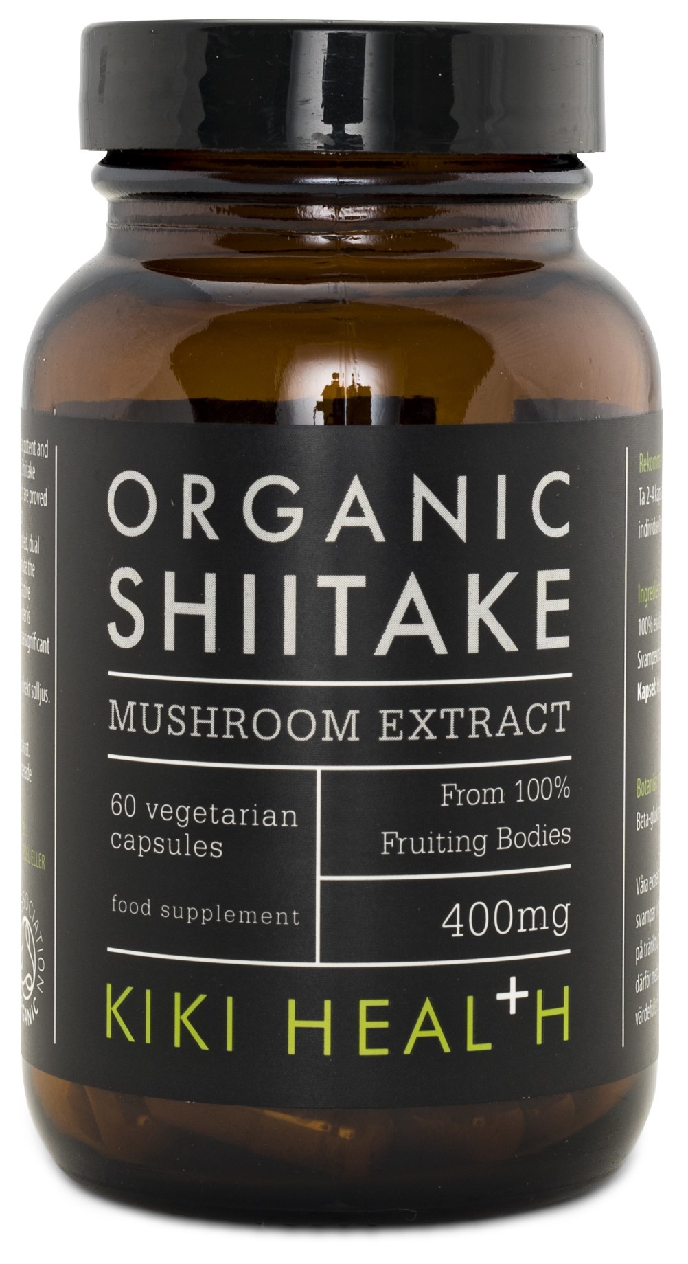 Kiki Health Organic Shiitake Mushroom Extract on korkealaatuinen luomushiitake-sienen uute. Uute on täysin puhdasta, tiivistettyä ja lisäaineetonta. Ainoastaan sienen itiöemää käytetään, mikä antaa beetaglukaanipitoisen uutteen. Käyttämällä uutetta voit helposti hyödyntää kaikki shiitake-sienen tarjoamat ravintoaineet.