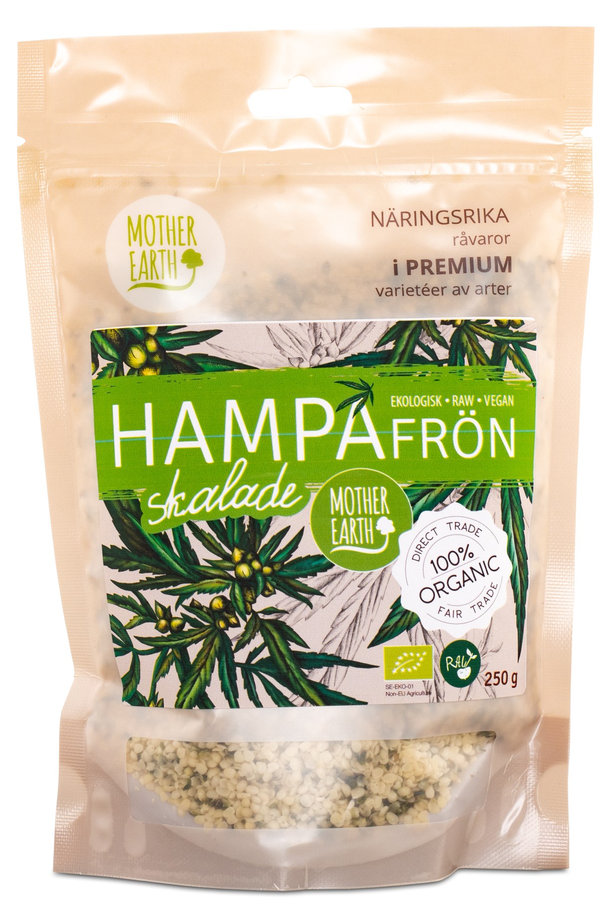 Hampunsiemenet ovat luontaisesti rikkaita proteiineista, kuiduista ja terveellisistä rasvahaposta. Lisää hieman hampunsiemeniä keittoihin ja patakeittoihin, mysliin tai smoothieen proteiinipitoisuuden lisäämiseksi. Mother Earth Hampunsiemenet ovat kuorittuja ja tulevat luomuviljelmistä Baltiasta, vapaa THC:stä. Hampunsiemet on käsitelty hellävaraisesti, jotta kaikki ravintoaineet säilyisivät, niin sanottua rawfoodia.