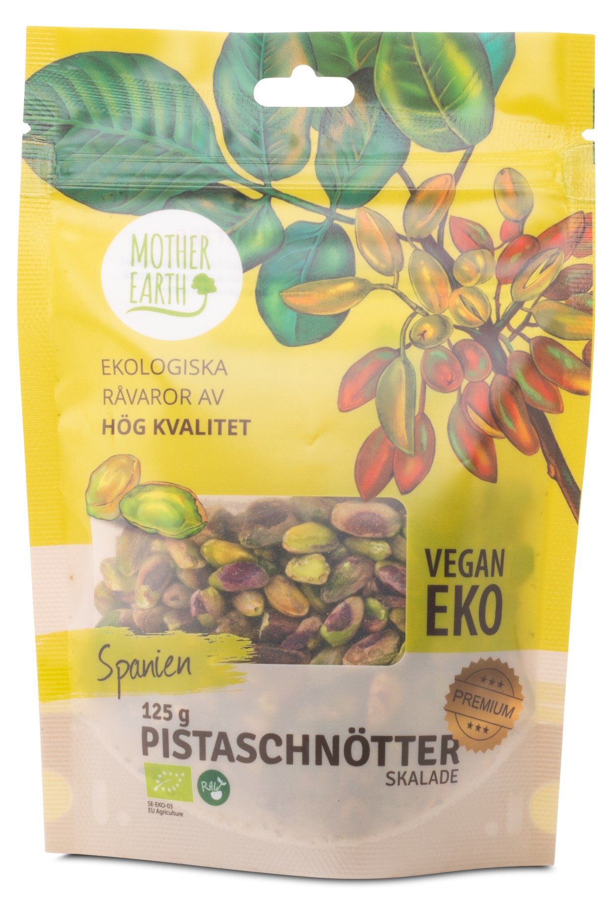 Mother Earthin Pistaasipähkinät Premium Raw & Eko ovat kuorittuja pistaasipähkinöitä (Pistacia vera). Paahdettu ja suolattu maun parantamiseksi. Vaikka siementä kutsutaan elintarvikkeena pistaasimanteliksi tai pistaasipähkinäksi, ei se botanisesti ole pähkinä. Tästä syystä monet pähkinäallergikot eivät yleensä ole herkkiä pistaasihedelmälle. Täydellinen käyttää täytteenä tai syötäväksi sellaisenaan herkullisena välipalana!