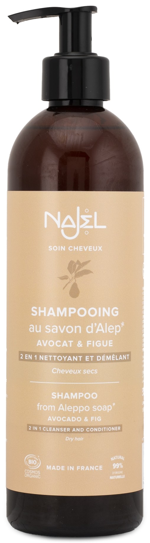 Saa pehmeät ja kiiltävät hiukset Najel Aleppo -saippuashampoolla 2 in 1 Dry Hairilla, 2 in 1 -shampoo sinulle, jolla on kuivat hiukset. Shampoo sisältää Aleppon saippuaa erilaisten kasviuutteiden kanssa, jotka vahvistavat ja ravitsevat hiuksia. Mukana muun muassa vitamiinirikasta ja pehmentävää avokadoa, pehmentävää viikunaa, vahvistavaa sarviapilansiementä, C-vitamiinirikasta limettiä ja rauhoittavaa kamomillavettä. Tavoitteena on pehmeät hiukset ilman takkuja! Shampoo on COSMOS-sertifioitu EcoCert Greenlife:n toimesta.