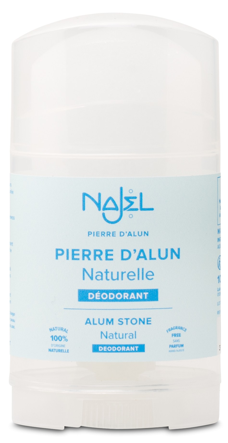 Najel Alum Stick on kiillotetusta alumiinikivestä tehty puikko, joka on täydellinen luonnolliseksi deodorantiksi. Alumiinikivellä on luontaisesti antibakteerisia ominaisuuksia, jotka estävät hajua aiheuttavia bakteereja. Voidaan käyttää sekä kainaloissa että jaloissa.Hypoallergeeninen ja tuoksuton.