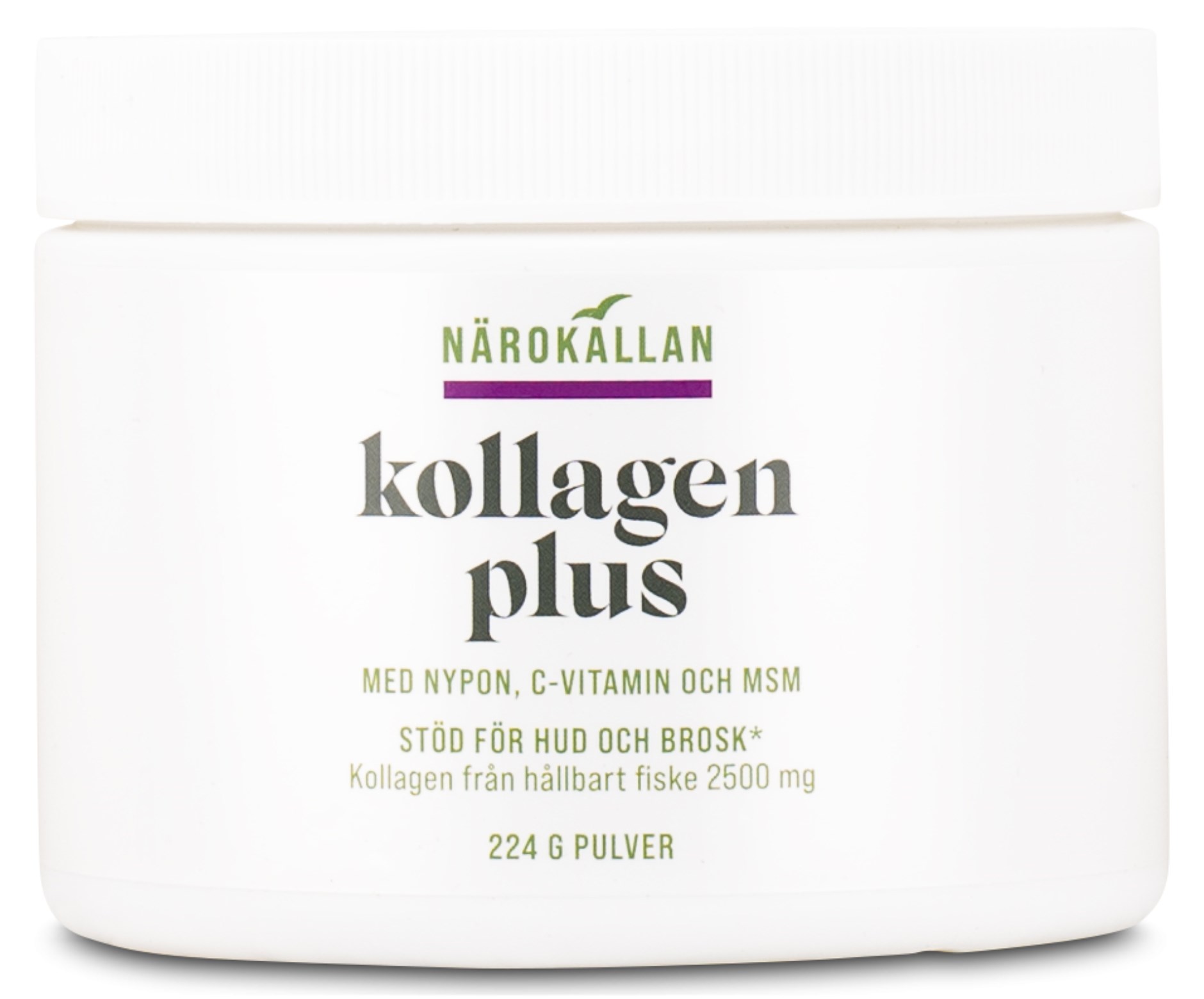 Närokällanin Kollageeni Plus on kollageenijauhe, johon on lisätty ravinteita useista vaikuttavista aineista: ruusunmarjaa, MSM:ää, hyaluronihappoa ja kurkumaa. Kaikki nämä ravintoaineet yhdistetään usein lisäravinteisiin, jotka tukevat nivelten, mutta myös ihon ja kynsien hyvinvointia. Kollageeni Plus sisältää kalakollageenia Alaska Pollockista, joka on peräisin kestävästi hoidetuista kalakannoista Pohjois-Amerikassa.