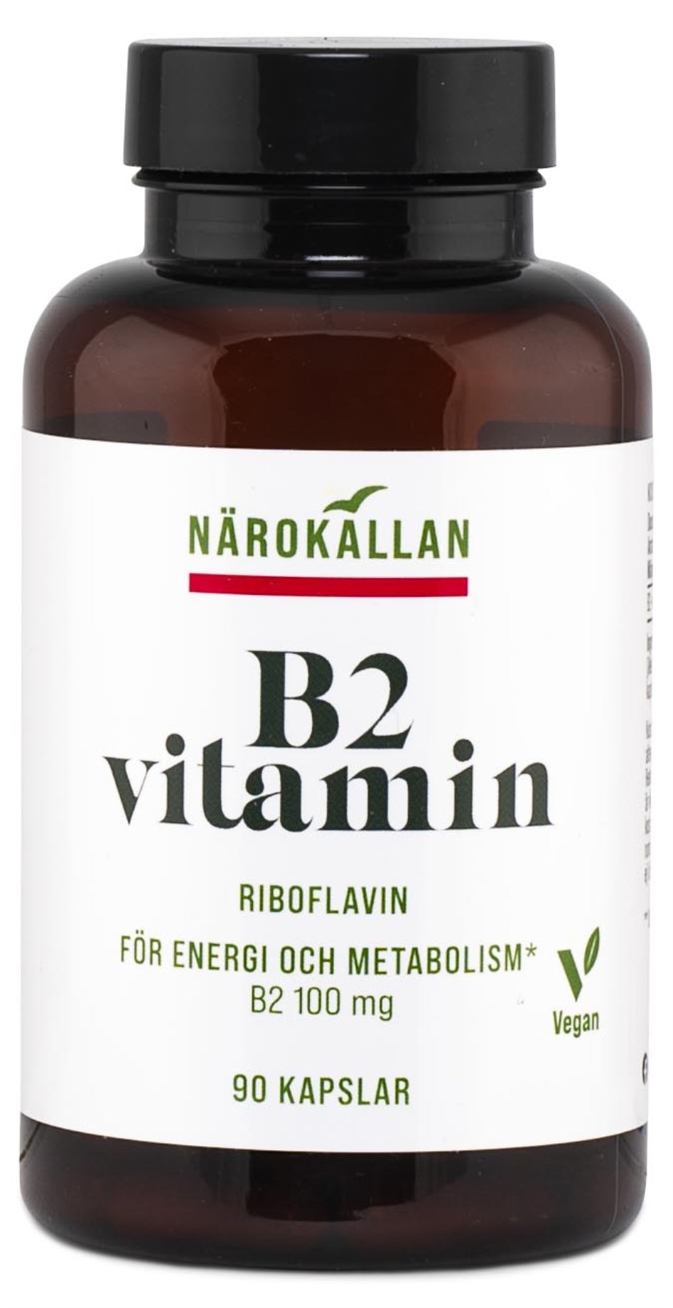 Riboflaviini, B2-vitamiini, on vitamiini, jolla on useita tärkeitä tehtäviä kehossa. Se muun muassa edistää normaalia aineenvaihduntaa ja rasvojen, hiilihydraattien ja proteiinien hajoamista. Se myös tukee normaalisti toimivien hermojen ja ihon terveyttä. Närokällanin riboflaviini sisältää 100 mg riboflaviinia kapselia kohden.