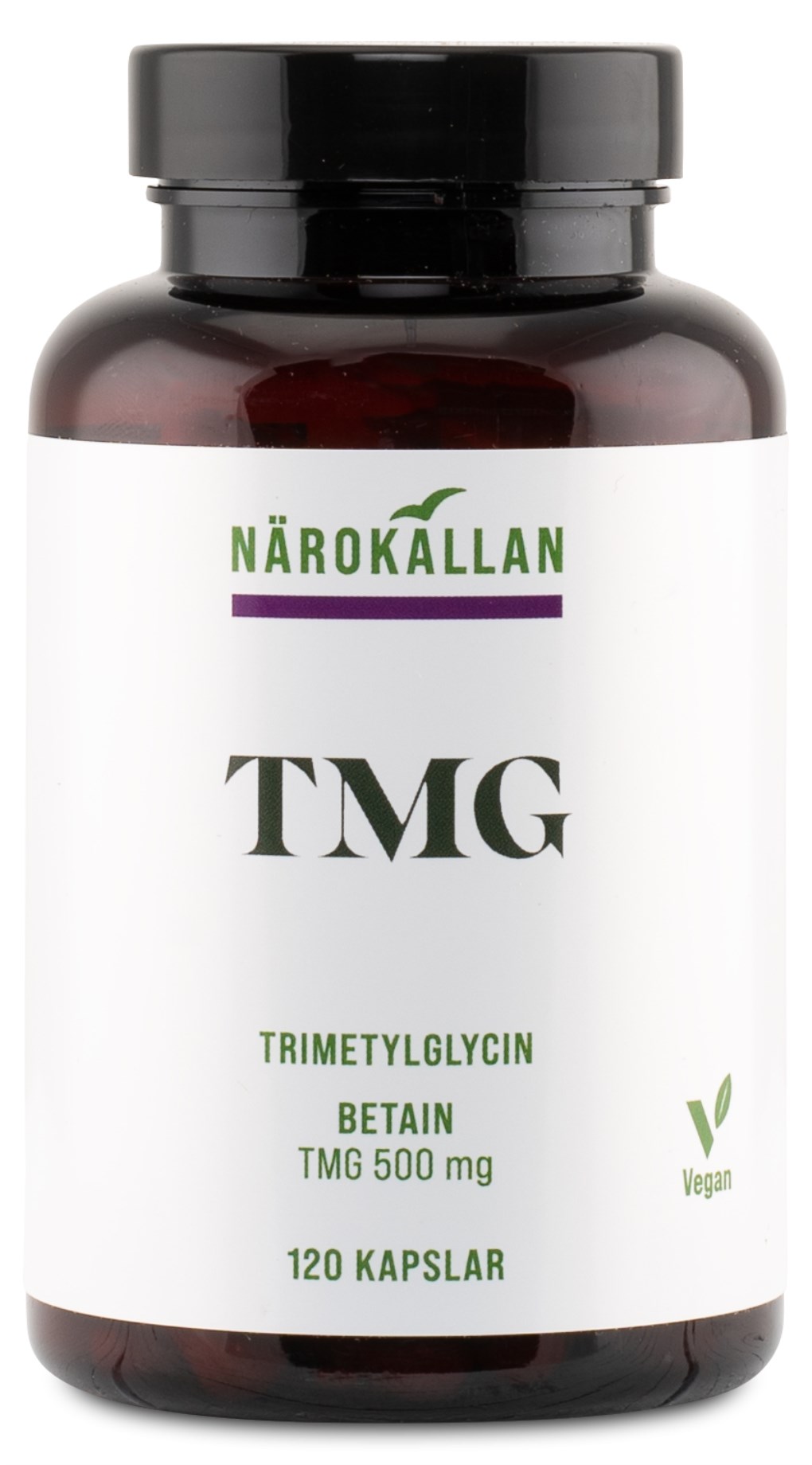 Närokällan TMG on ravintolisä, joka sisältää TMG:tä, jota kutsutaan myös trimetyyliglysiiniksi ja betaiiniksi. TMG on yhdiste, jonka keho voi luonnollisesti tuottaa, ja se on myös läsnä eri elintarvikkeissa, kuten vehnänalkioissa ja pinaatissa. Närokällan TMG on myös rikastettu aminohapolla leusiinilla. Yksi kapseli sisältää 500 mg TMG:tä.