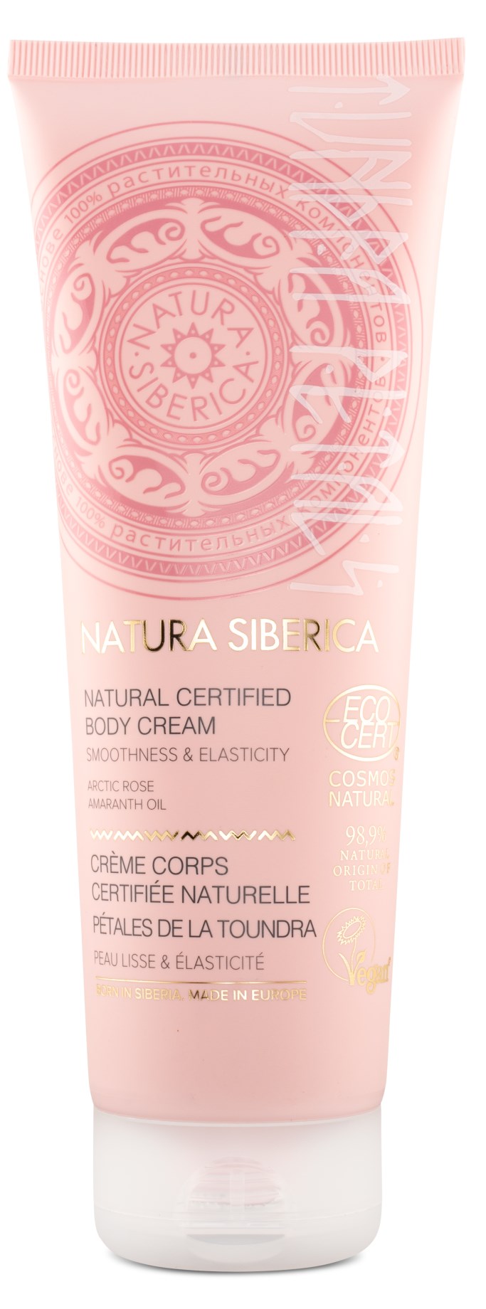 Natura Siberica Body Cream on kosteuttava ihovoide, joka sisältää ekologisia kasviuutteita ja hyötykasvien öljyjä. Muun muassa ruusuuute ja ekologisen amaranttiöljyn avulla se ravitsee ihoa. Täydellinen valinta sinulle, joka haluat pehmeän ihon pitkäaikaisella joustavuudella! Sopii kaikille ihotyypeille.