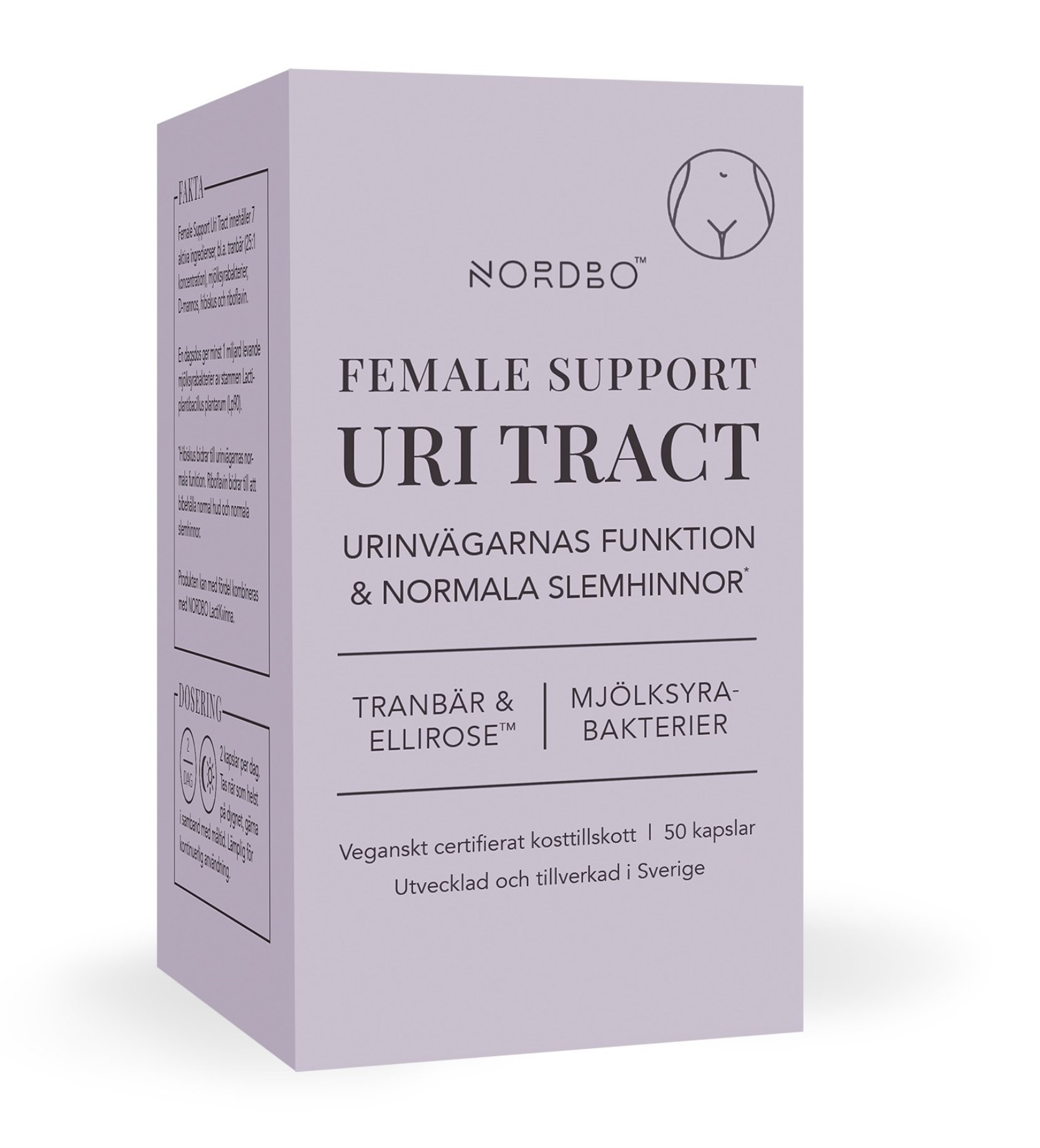 Female Support UriTract Nordbolta on suunniteltu yhteistyössä Therese Lindgrenin kanssa ja kehitetty virtsateiden ja limakalvojen normaalin toiminnan tueksi. Tässä tuotteessa on seitsemän aktiivista ainesosaa, jotka toimivat yhdessä tässä ainutlaatuisessa tuotteessa – karpalo, jolla on tunnetut ominaisuudet, hibiskus, D-mannoosi ja riboflaviini, jotka edistävät limakalvojen normaalia toimintaa. Kapselit ovat lisäksi happovarmoja vatsan happaman ympäristön kestämiseksi. UriTractia suositellaan säännölliseen käyttöön, muista juoda runsaasti vettä.