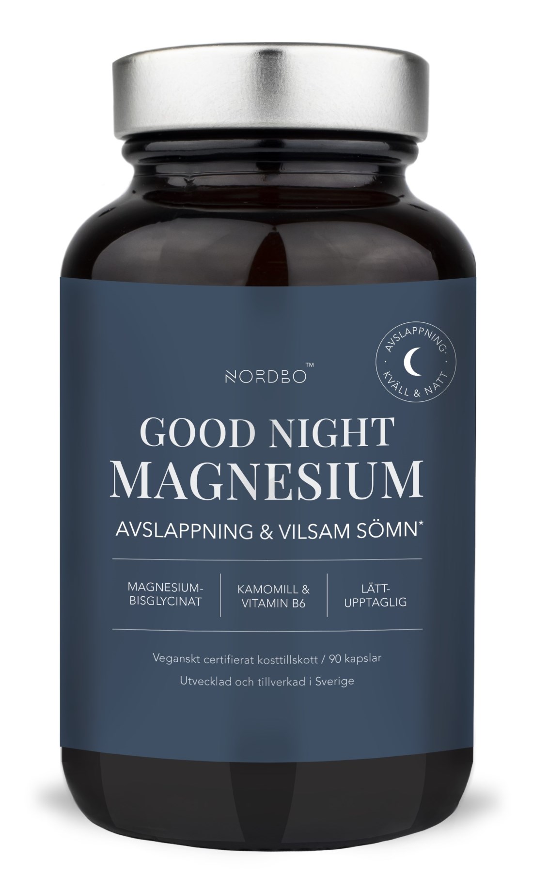 Nordbon Good Night Magnesium sisältää helposti imeytyvän magnesiumbisglysinaatin, kamomillauutteen ja B6-vitamiinin yhdistelmän – täydellinen yhdistelmä iltaa ja yötä varten! Magnesiumbisglysinaatti on magnesiumin muoto, joka on sitoutunut glysiini-aminohappoon, mikä parantaa imeytymistä ja tekee siitä hellävaraisen vatsalle. Monet kokevat, että kamomilla auttaa rentoutumaan ja saa aikaan rauhallisen unen. Lisäksi sen tiedetään tukevan henkistä ja fyysistä hyvinvointia!