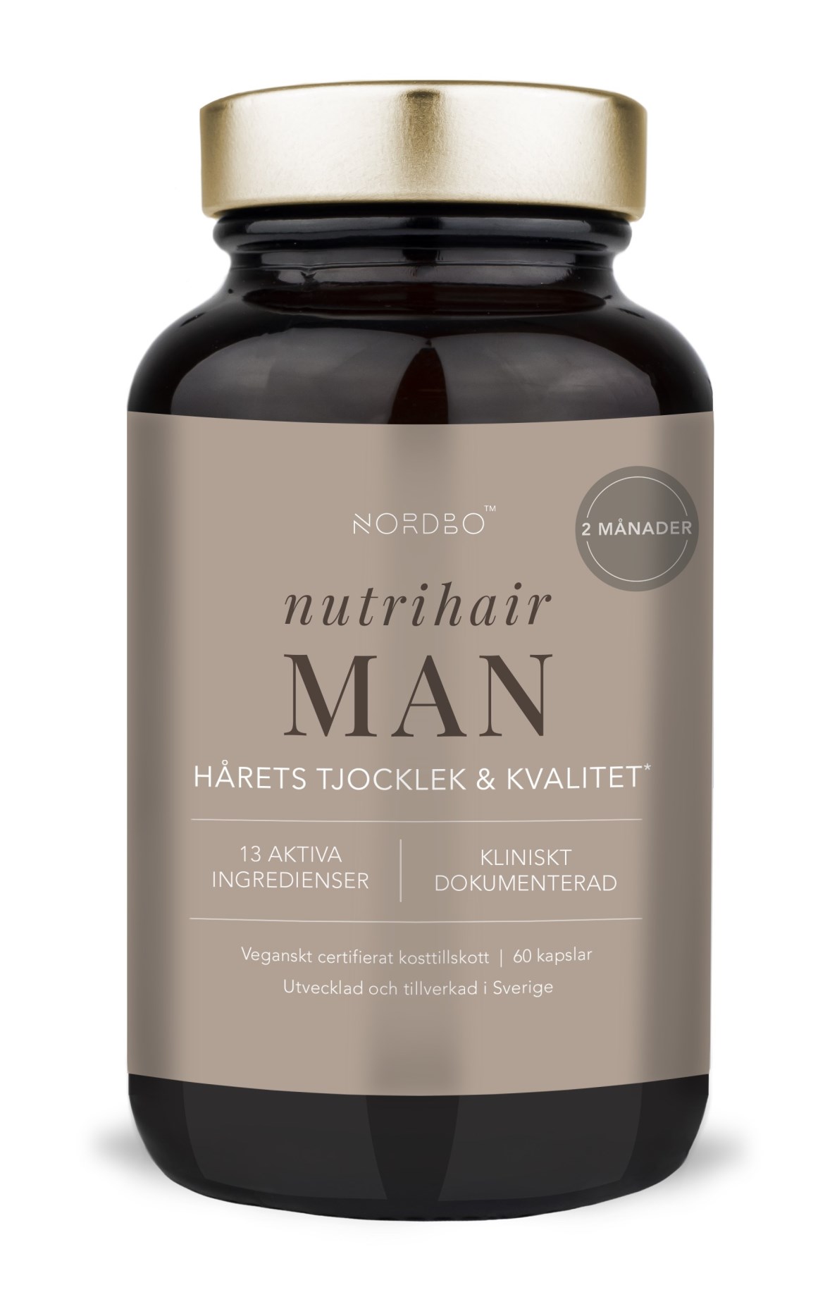 Nordbo Nutrihair Man on lisäravinne miehille, jotka haluavat huolehtia hiuksistaan sisältäpäin. Nutrihair Man sisältää Actrisave -yhdistettä, mustan riisin ja viikunakaktuksen kukan synergistä yhdistelmää, joka arvioitiin toukokuussa 2023 tehdyssä tutkimuksessa, jossa osallistujat raportoivat positiivisista vaikutuksista hiusten laatuun ja hiustenlähtöön. Täydennysravinteessa on myös muun muassa macaa, granaattiomenaa, kurpitsansiemenuutetta, kamomillaa, L-kysteiinia ja bambua, jotka kaikki auttavat antamaan hiuksille kunnon tehon. Bambu sisältää lisäksi piitä, joka edistää hiusten, ihon ja kynsien normaalia laatua ja on suosittu ainesosa hiusten hyvinvointia tukevissa lisäravinteissa.