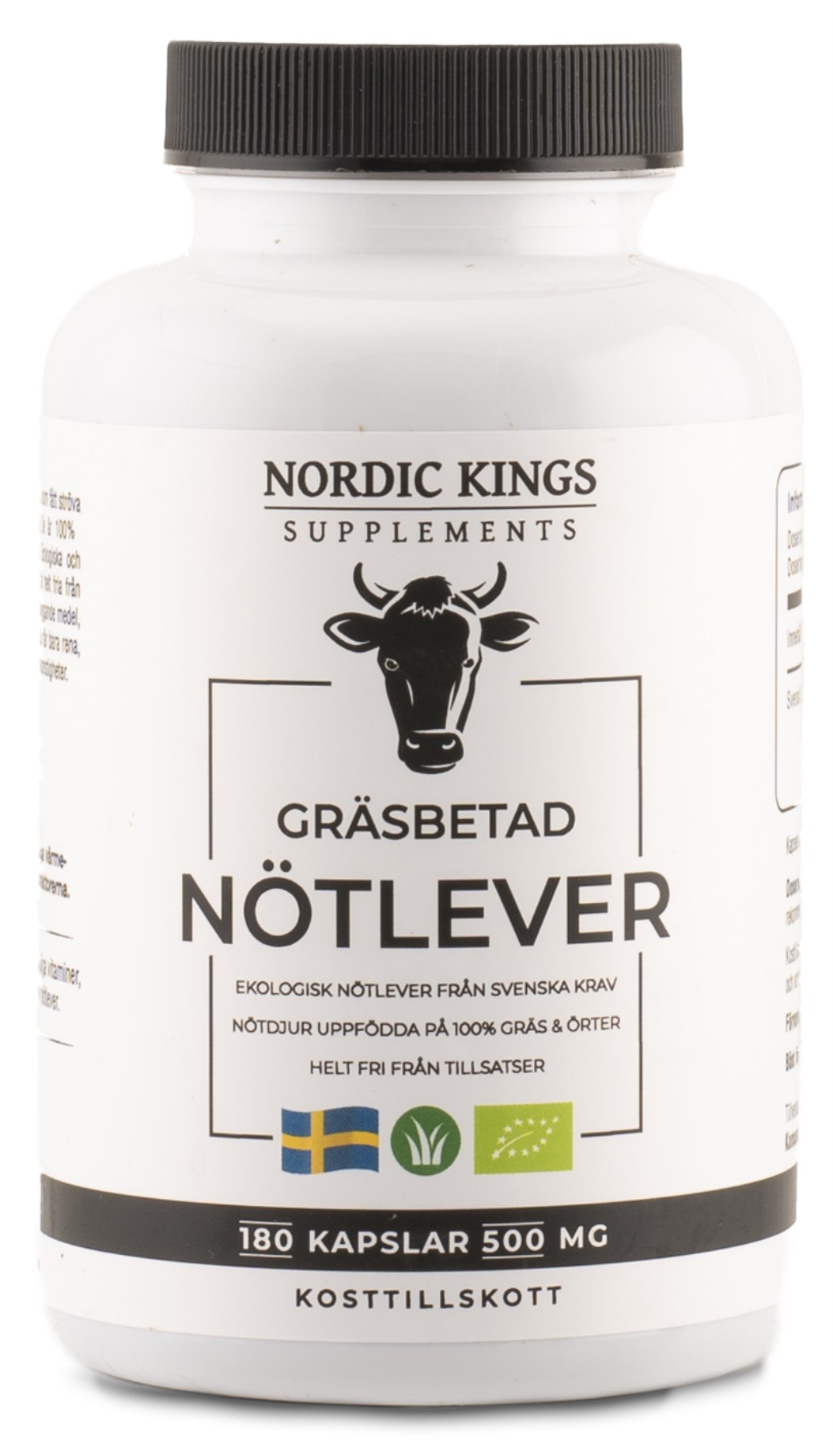 Nordic Kings Ruohoruokitun Naudan Maksa Luomu sisältää kapseleita, jotka on täytetty ruoholla ruokittujen suomalaisten nautojen maksalla. Eläimet ovat saaneet ravinnokseen 100 % ruohoa ja yrttejä, ilman soijaa, vehnää tai maissia sisältäviä viljaravinteita. Naudanmaksa pakastekuivataan huolellisesti sen korkean ravinnepitoisuuden säilyttämiseksi ja se on vapaa antibiooteista, kasvuhormoneista ja torjunta-aineista. Maksa on erinomainen A-vitamiinin lähde retinolin muodossa sekä sisältää CoQ10:ä, hemirautaa, B12-vitamiinia, koliinia, folaattia ja useita tärkeitä kofaktoreita. Ravintolisä on allergiavapaa eikä sisällä lisäaineita, täyteaineita tai sidosaineita ainoastaan ravintorikasta pakastekuivattua naudanmaksaa.