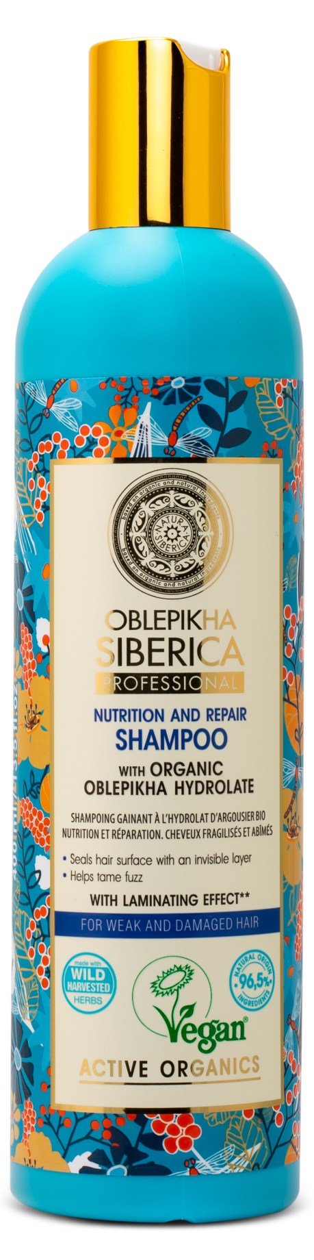 Natura Siberica Oblepikha Siberica Shampoo Nutrition & Repair antaa hiuksillesi erittäin intensiivisen kosteutuksen, hoitaa vaurioituneita ja hauraita hiuksia samalla kun se suojaa niitä lämpimien muotoilutyökalujen käytön aikana. Tämä kermaisen koostumuksen omaava shampoo sisältää vitamiineja ja aminohappoja, jotka ravitsevat hiuksia sekä tyrni- ja arganöljyä, jotka antavat hiuksille ylimääräistä kiiltoa ja silkinpehmeän tunteen. Snow Cladonian ja Rhodiolan uutteet tarjoavat intensiivistä ravintoa ja kosteutusta sekä auttavat korjaamaan ja uudistamaan heikkoja ja vaurioituneita hiuksia.