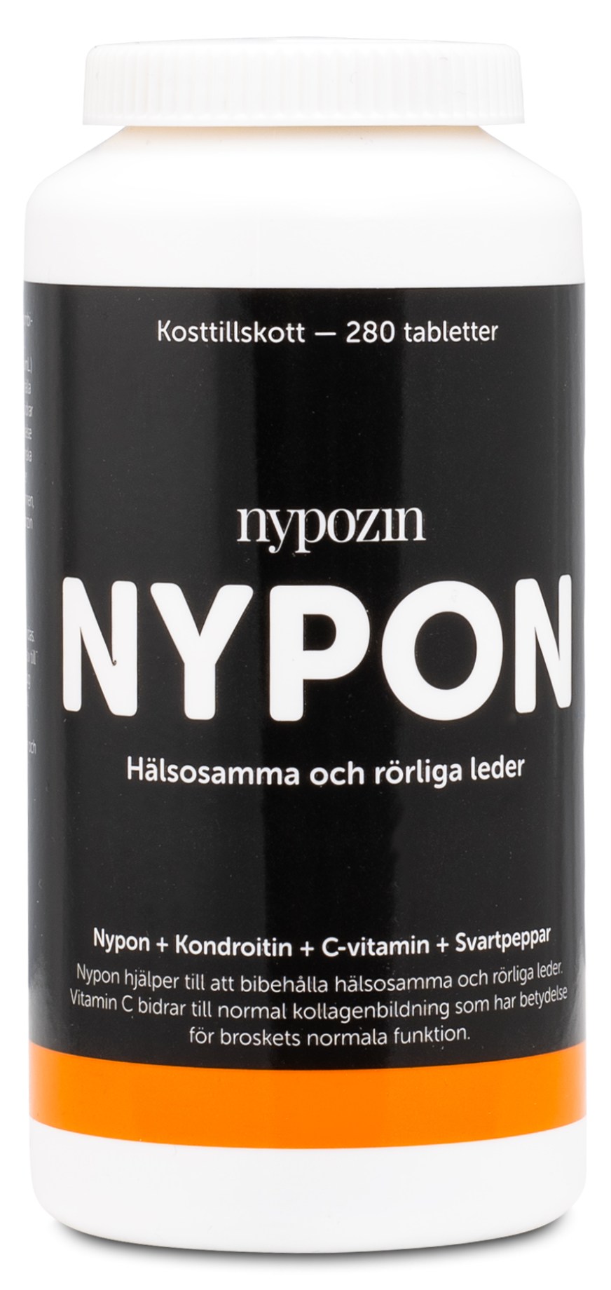 Tehtäessä Nypozinia vieläkin tehokkaammaksi, siihen on lisätty Bioperine®, joka on mustapippuriuutetta. Kondroitiini ja patentoitu ainesosat Ester-C® (C-vitamiini) ja Bioperine® muodostavat yhdessä tämän eksklusiivisen yhdistelmän. Ruusunmarja edistää terveiden ja liikkuvien nivelten ylläpitämistä, kun taas C-vitamiini edistää normaalia kollageenin muodostumista, mikä on tärkeää muun muassa verisuonten normaalitoiminnalle.