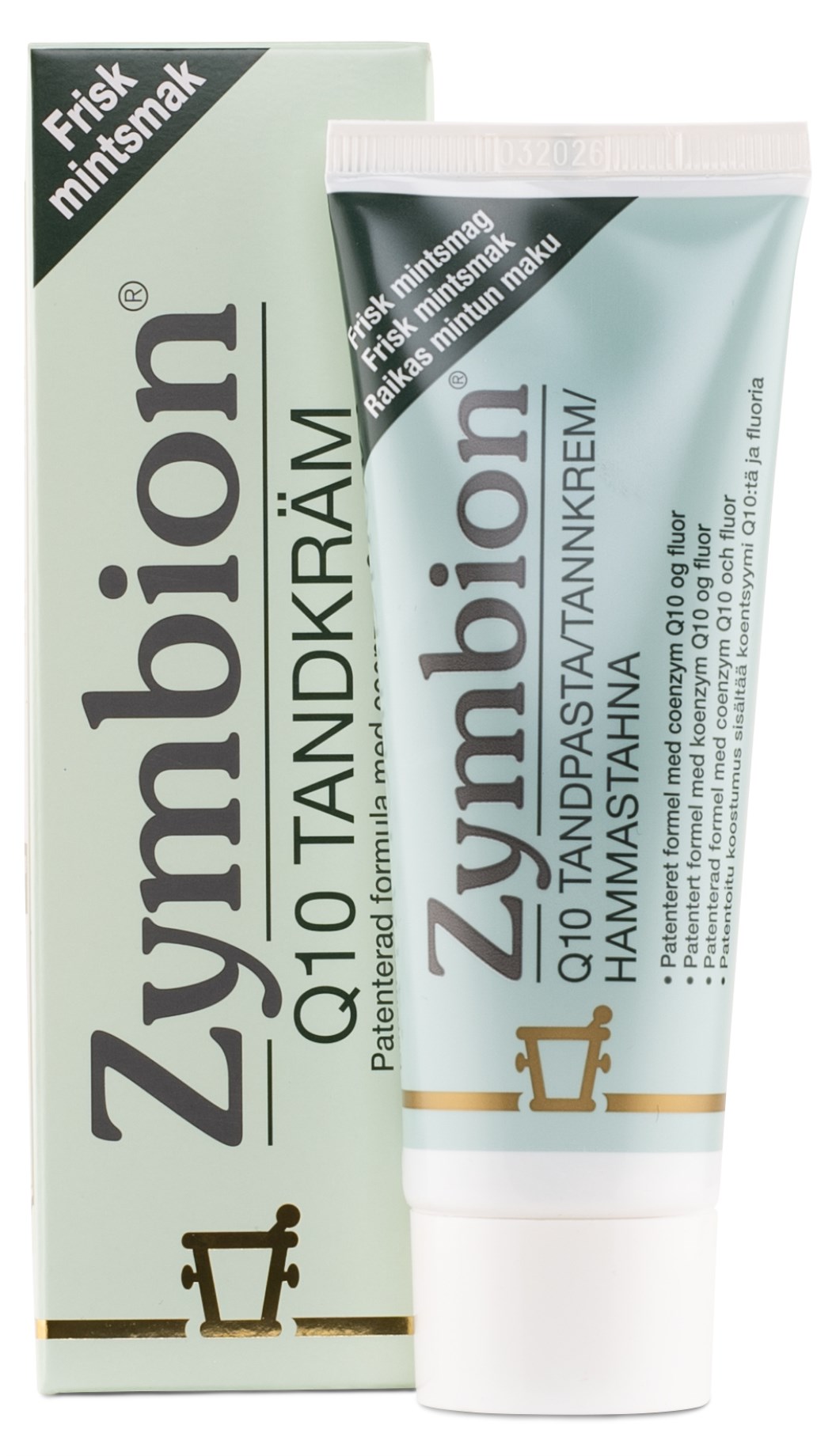 Zymbion on uniikki hammastahna Q10:lla, aktiivisella vitamiinin kaltaisella aineella, joka toimii antioksidanttina. Q10 asettuu ientaskuihin, missä se edistää terveitä ikeniä. Hammastahna sisältää myös sakkaroosi-lauraattia, joka ehkäisee bakteerien kasvua, jotka puolestaan aiheuttavat reikiä hampaisiin. Vapaa vaahtoavista aineista.