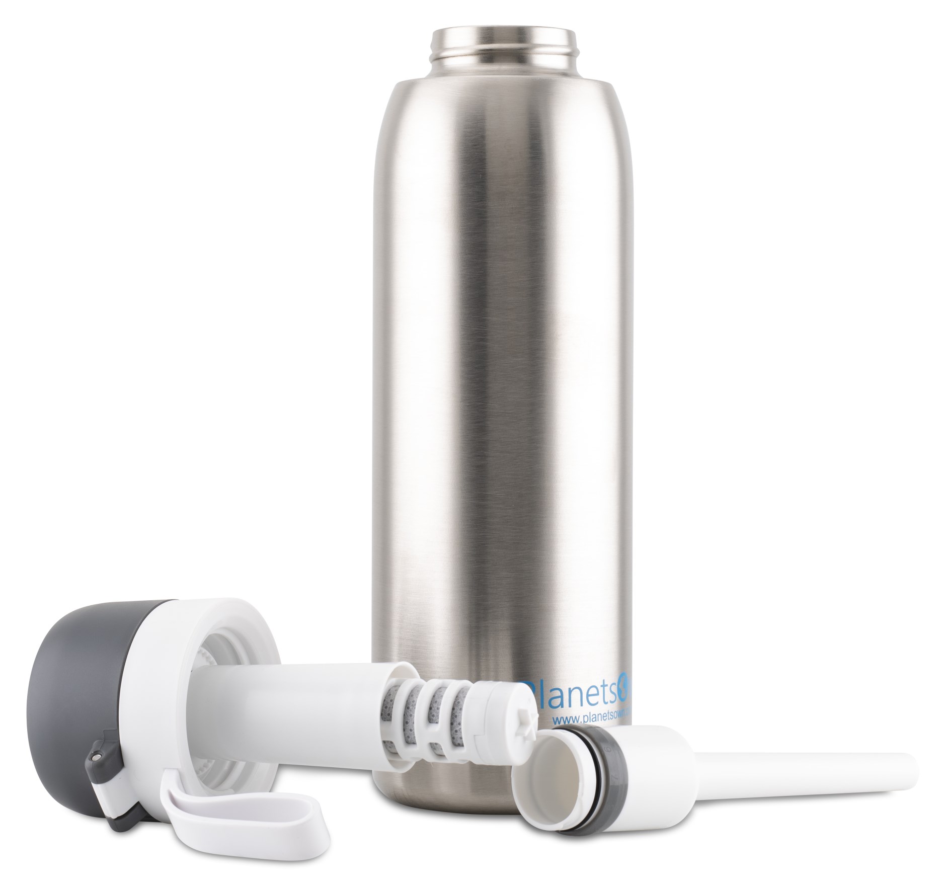 PlanetsOwn suodattimella varustettu vesipullo on kätevä vesipullo, jossa on oma puhdistusjärjestelmä. Aktiivihiilisuodatin hoitaa muun muassa klooria, orgaanisia epäpuhtauksia ja erityisesti PFAS-yhdisteitä sekä parantaa juomaveden makua ja hajua. Ahlstrom-kalvosuodatin puhdistaa esimerkiksi bakteereista, loisista, viruksista, endotoksiineista, lääkejäämistä, mikromuoveista ja PFAS-yhdisteistä. Pulloa voidaan käyttää myös termospullona, koska se on kaksinkertaisesti eristetty. Pullon mukana tulee hiilipatruuna vedenpuhdistusta varten.