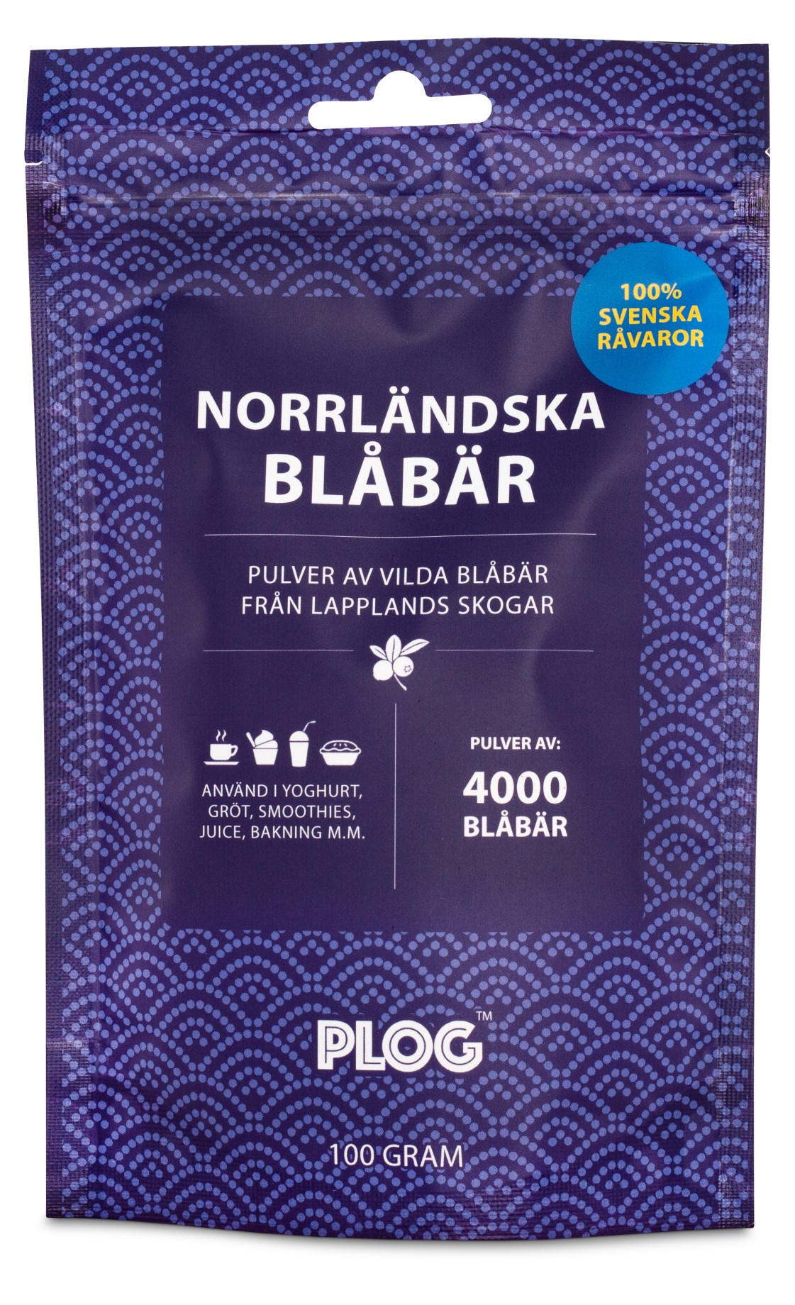 PLOG Norrländska Mustikka on ravitseva jauhe mustikoista. Mustikat ovat kasvaneet villinä Lapin metsissä ja ovat käsittelemättömiä ja hellävaraisesti kuivattuja. Marjat on kuivattu kokonaisina alle 42 asteen lämpötilassa kaikkien ravintoaineiden säilyttämiseksi. Mustikat ovat runsaita C-vitamiinin, kuitujen ja antioksidantti antosyaanin lähteitä. Marjoista jäljelle jääneestä nesteestä valmistetaan mustikkajuomaa. Ravitseva jauhe sopii täydellisesti käytettäväksi mehuissa, jogurtissa, smoothieissa tai leivonnassa.