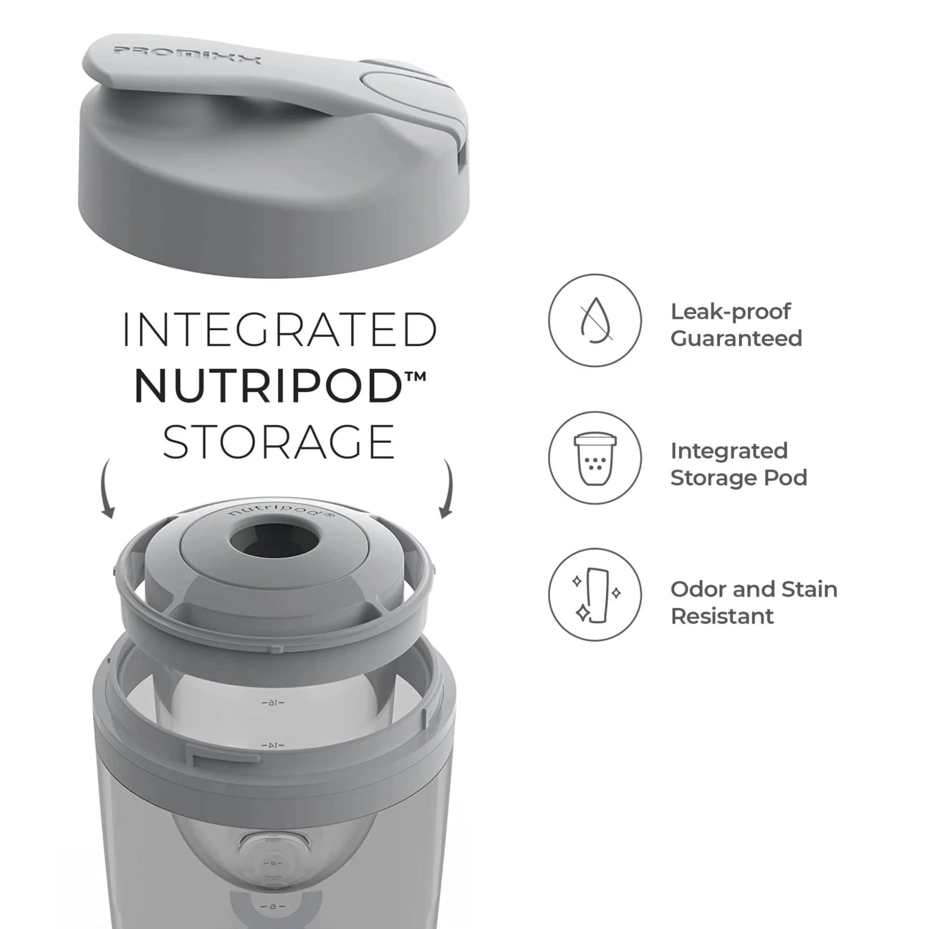 Promixx Pro Electric Shaker on tehokas ja älykäs shaker, joka sekoittaa juomasi tasaisesti ja paakuttomasti - yhdellä napinpainalluksella. Olipa käytössäsi proteiini, palautusjuoma tai jokin muu jauhe, Vortex Mixing Technology takaa täydellisen koostumuksen joka kerta. Pullo on kestävä, hajuja hylkivä ja täysin vuotamaton. Siinä on ergonominen urheilukansi sekä sisäänrakennettu Nutripod-säiliö, joka on täydellinen jauheen säilytykseen siihen saakka, kunnes on aika sekoittaa. Moottoriosa latautuu USB-C:n kautta ja yhdellä latauksella sekoitat jopa 90 sekoitusta.
