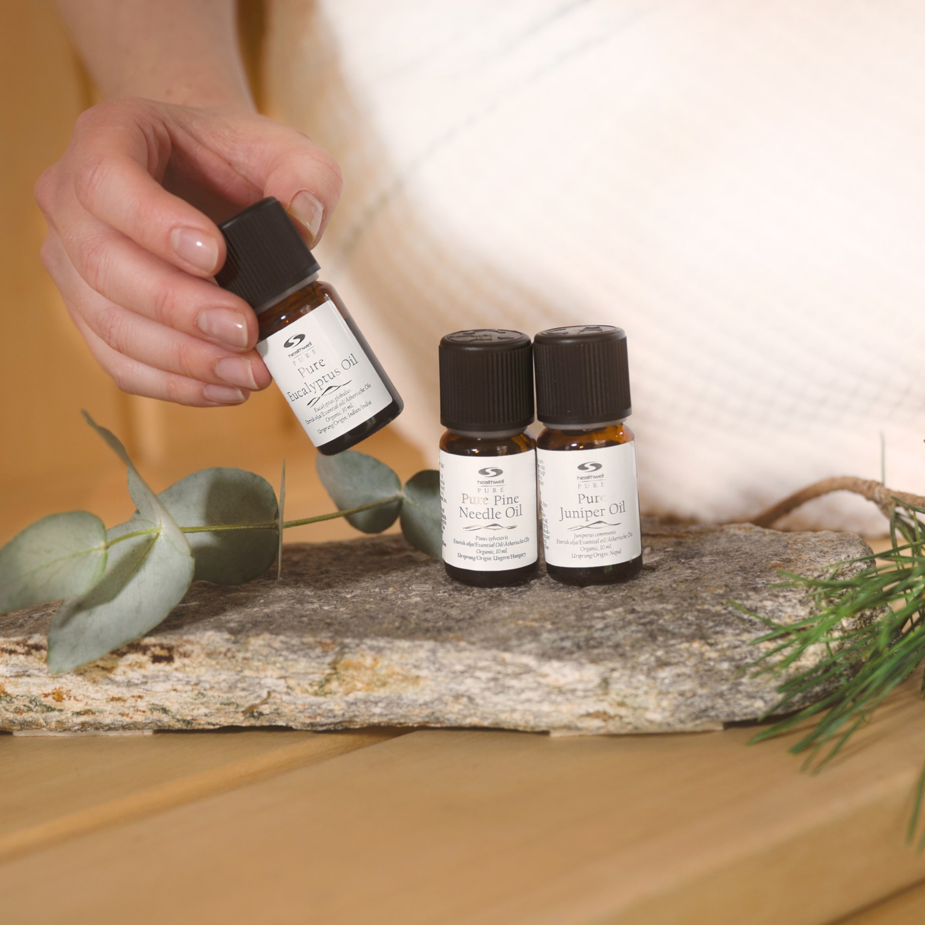 PURE Saunapaketissa saat kolme korkealaatuista puhdasta öljyä.