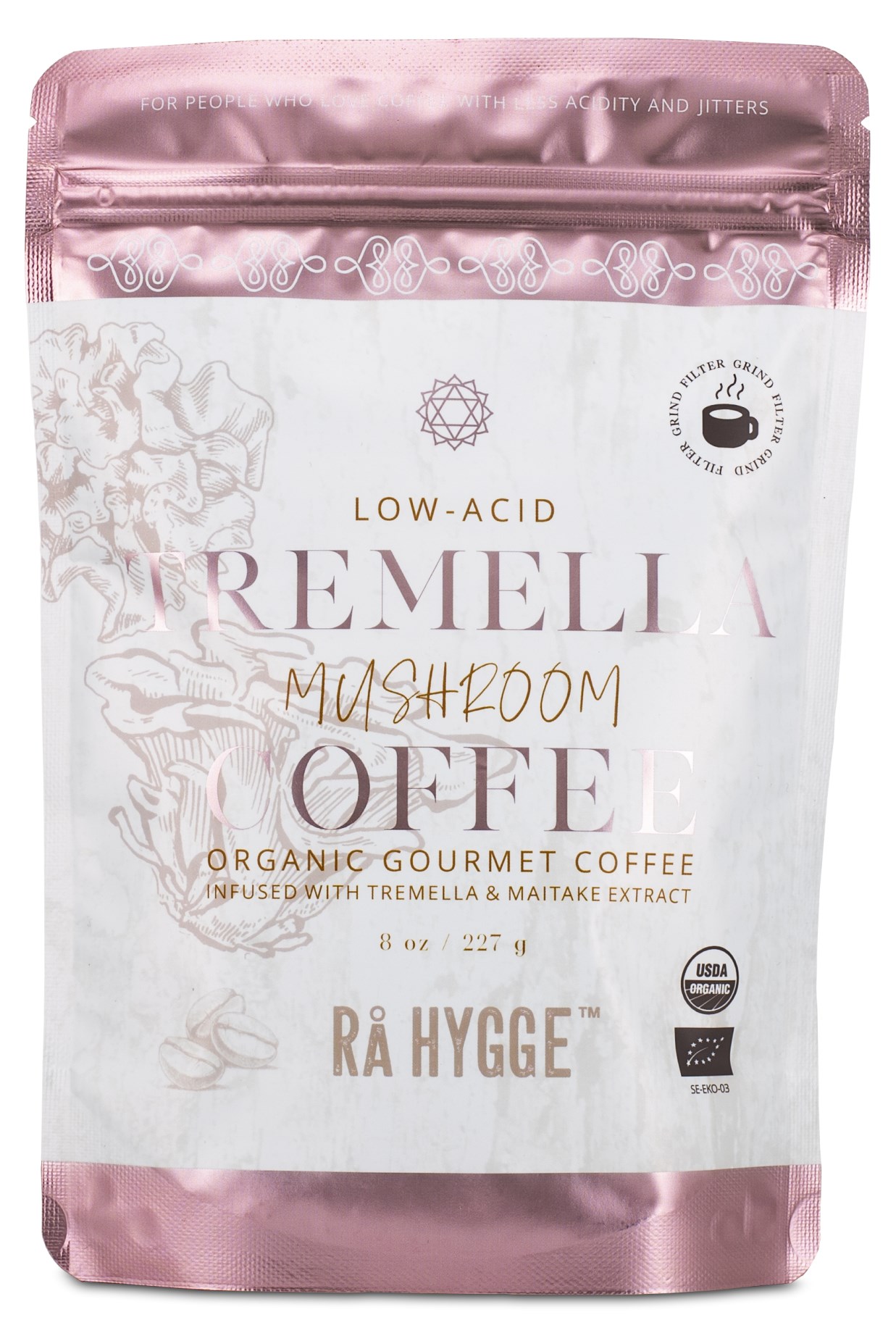 Rå Hygge Tremella & Maitake Sienikahvi on täyteläinen ekologinen kahvi, valmistettu tummapaahtoisista perulaisista Arabica-pavuista. Tämä tuote on rikastettu tremella- ja maitake-sieniuutteilla luomaan täydellisen kauneussekoituksen. Perinteisessä kiinalaisessa lääketieteessä tremella tunnetaan “kauneuden sienenä”, ja tässä se yhdistetään maitake-uutteeseen ainutlaatuisen ja nautittavan makuprofiilin luomiseksi. Nämä funktionaaliset sienet eivät ainoastaan auta pH-tasojen alentamisessa, vaan ne tuovat myös mukanaan muita terveyttä edistäviä ominaisuuksia. Alhaisella pH-tasolla, kuten 6,0, verrattuna tavalliseen kahviin, jonka pH on 4,0 ja 6,0 välillä, on tämä kahvi lempeä vatsalle. Kahvipavut tulevat pienviljelijöiltä Perusta ja ne paahdetaan käsityöpahtimossa Ruotsissa. Sienikahvia on saatavilla kokonaisina papuina tai suodatinkahvina, ja se sopii erinomaisesti sekä vastavalmistettuun suodatinkahviin että espressoon. Nauti juomasta kahdesti päivässä saadaksesi kestävää energiaa.