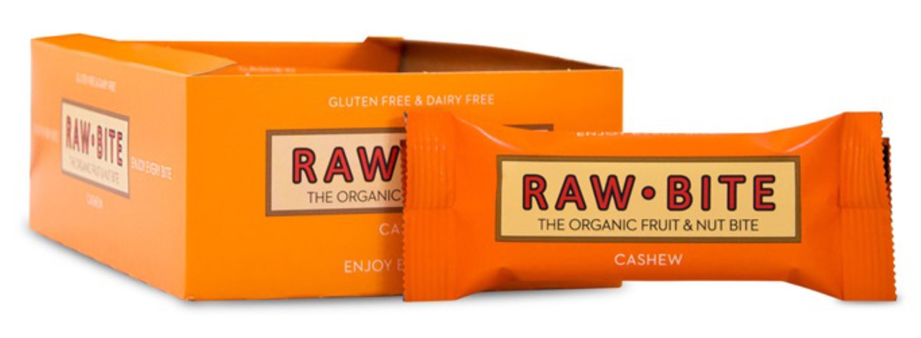 RAWBITE cashew valmistetaan 100% luonnollisista, luomu ja raakaruoka ainesosista. RawBite on hedelmä- ja pähkinäpatukka, joka on maidoton, munaton, gluteeniton, soijaton, sokeriton, eikä sisällä keinotekoisista maku- ja väriaineista. Se on yksinkertaisesti terveellinen välipalapatukka, joka sopii erinomaisesti menossa mukana laukkuun tai vaikka kahvitauolle!