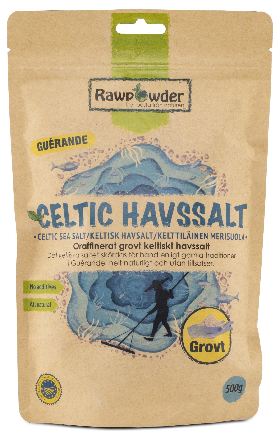 RawPowder Kelttiläinen Merisuola on luonnollinen ja 100 % jalostamaton suola, jolla on korkea mineraalipitoisuus. Se sopii erinomaisesti ruokasuolaksi, ruoanlaittoon, suolaliuokseksi tai luonnolliseksi nesteytykseksi. Kelttiläinen merisuola, joka tunnetaan myös nimellä Celtic sea salt, tulee Ranskasta ja sillä on harmaa väri johtuen sen runsaasta mineraalipitoisuudesta. Se ei myöskään käy läpi samaa jalostusprosessia kuin tavallinen ruokasuola.
