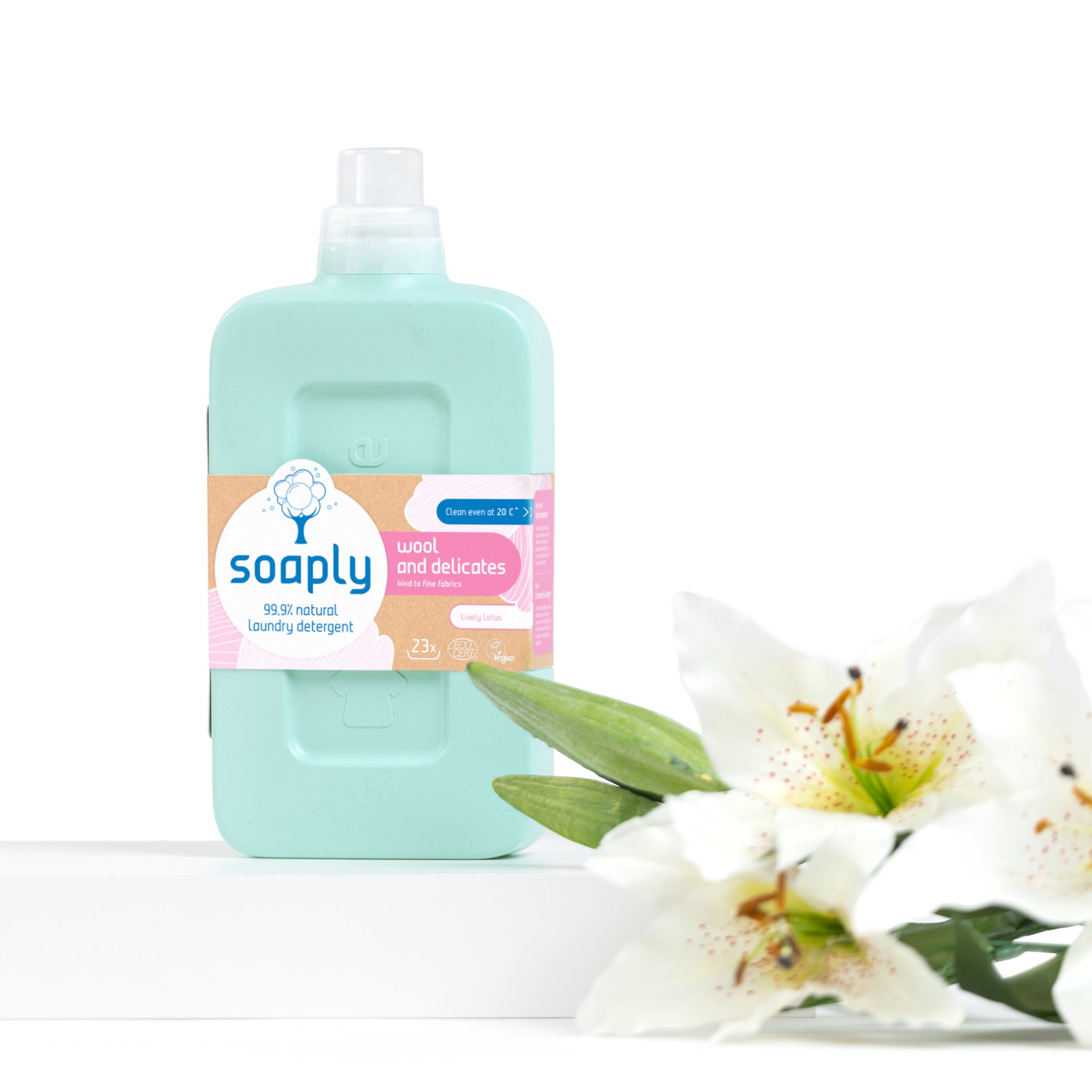 Hienopyykki on hyvissä käsissä Soaply Nestemäisellä Hienopesuaineella. Tämä hellävarainen pesuaine estää nyppyjen muodostumista ja pitää suosikkivaatteesi raikkaina pidempään. Suositellaan käytettäväksi herkille kankaille.