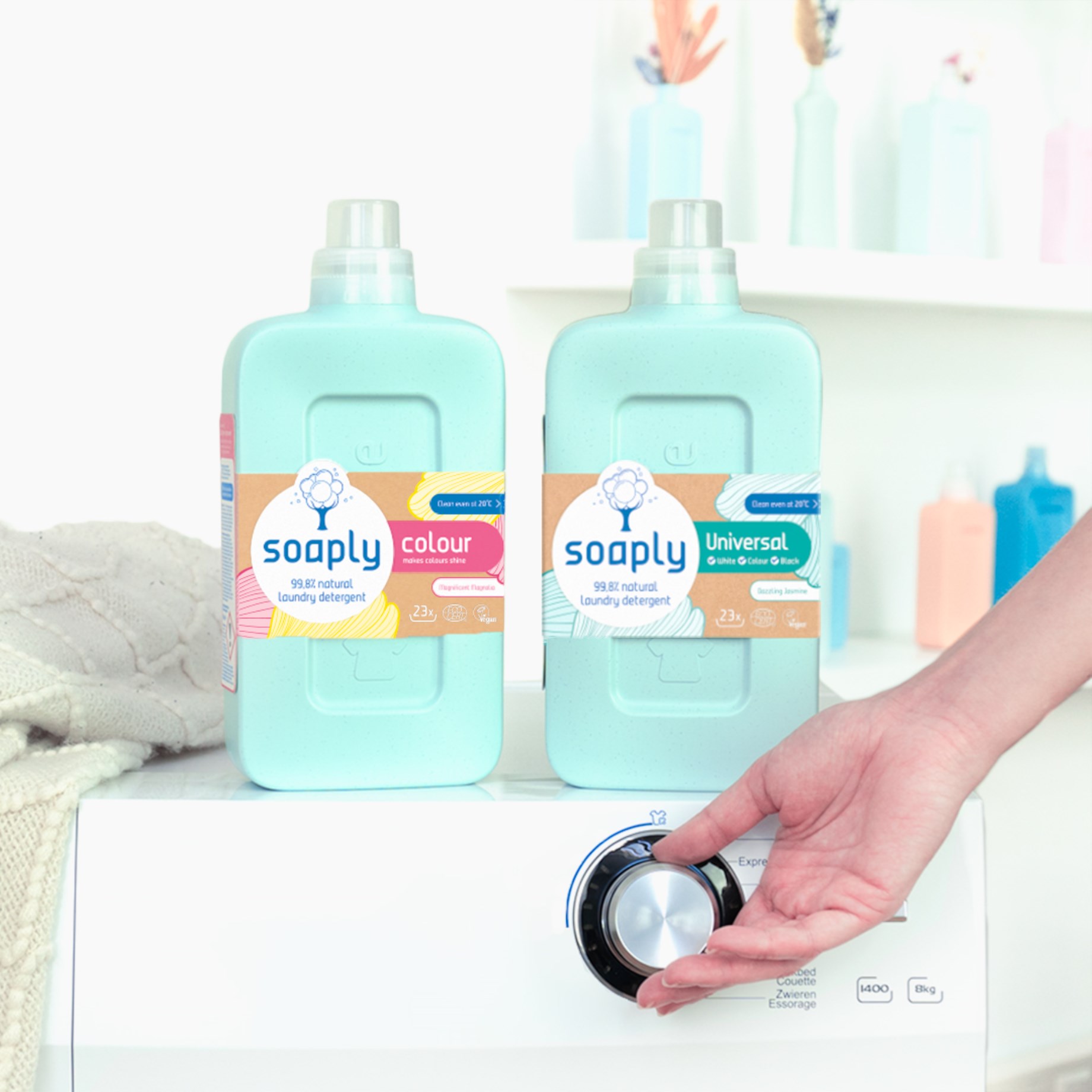 Pese ilman synteettisiä hajusteita, väriaineita ja mikromuoveja Soaply Nestemäinen Yleispesuainetta käyttäen. Soaply hyödyntää Himalayan sapindus-hedelmien kuorta, joka sisältää luonnollista saippuaa ja sisältää 99,01 % luonnollisia ainesosia.