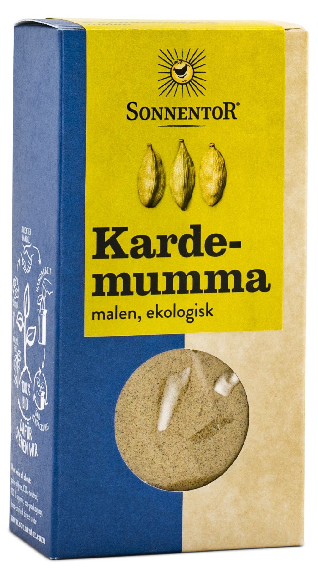 Sonnentorin jauhettu kardemumma (cardamom) toimii erinomaisena mausteena monissa mausteseoksissa ja erityisesti leivonnassa, pullissa, kahvissa ja muissa juomissa. Sonnentorin Kardemumma on 100 % luomua ja tulee ympäristöystävällisessä pakkauksessa. Kardemummalla on tunnettu ja erittäin suosittu maku ja tuoksu. Tämä kardemumma on jo valmiiksi jauhettu ja valmis käytettäväksi.