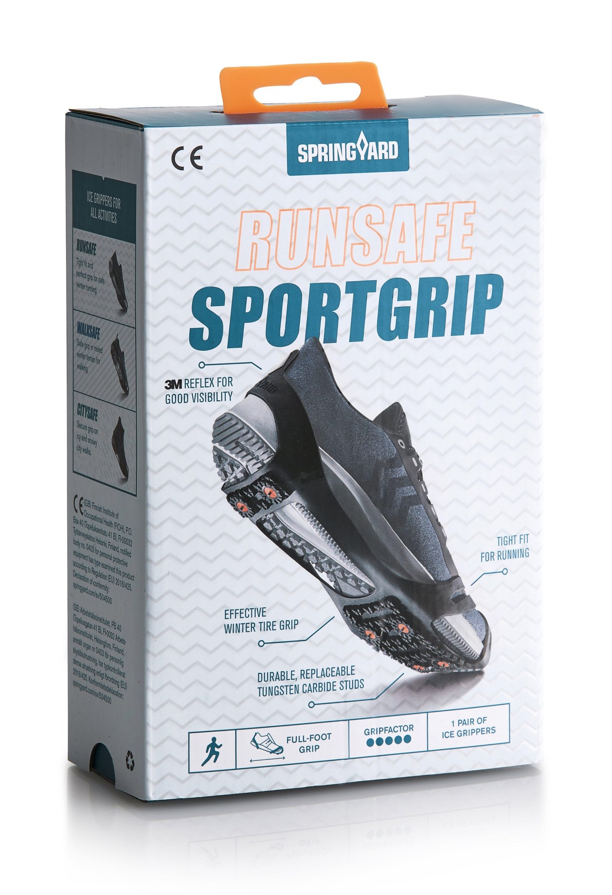 Tunne itsesi turvalliseksi Springyard SportGrip Runsafe -liukuesteellä, joka on huolellisesti suunniteltu jää- että lumijuoksuun. Tämä lenkkikenkien liukueste tarjoaa sinulle vakaan askelluksen ja ne toimivat yhtä hyvin pitkissä sessioissa kuin intervalliharjoittelussa. Kuvioidun pohjan ja kuuden nastapiikin ansiosta saat maksimaalisen otteen. SportGrip Runsafe soveltuu kaikkiin juoksukenkiin ja on valmistettu kestävästä luonnonkumista kestävillä ja vaihdettavilla piikeillä, jotka on tehty volframkarbidista. CE-sertifioitu (EU) 2016/425 mukaan. Sopii kaikkiin juoksukenkiin!