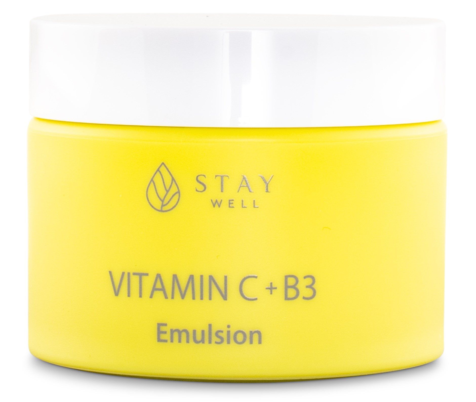 Virvoita ihoasi StayWell Vitamin C+B3 Niacinamide Emulsion Cream -voiteella! Voide, joka kosteuttaa, virkistää ja suojaa. Se sisältää C-vitamiinipärskeitä, jotka liukenevat ihokontaktissa. C-vitamiini edistää muun muassa normaalia kollageenin muodostumista, mikä on tärkeää iholle. Levitä voidetta aamuin illoin!