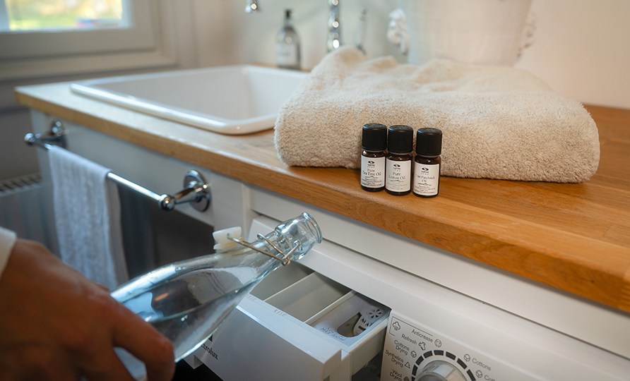 Itsetehdyllä huuhteluaineella on monia etuja. Sen lisäksi, että se on hellävarainen ympäristölle, voi itse tehty huuhteluaine auttaa värien pysyvyydessä ja poistaa epätoivottuja hajuja tehokkaasti. Se toimii itseasiassa myös pesukoneen kalkinpoistajana sisältämättä kuitenkaan mitään haitallisia aineita.