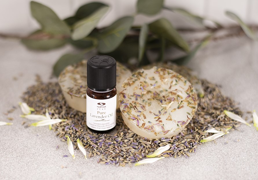 Eteerinen laventeliöljy antaa saippualle rentouttavan ja rauhoittavan tuoksun.