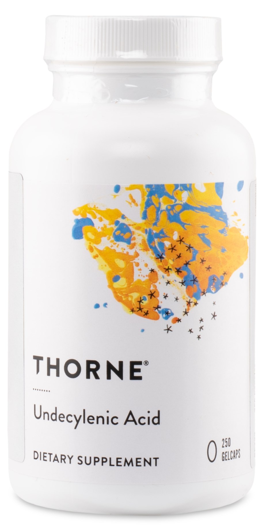 Thorne Undecylenic Acid on laadukas lisäravinne, joka sisältää undekyleenihappoa (undecylensyra), luontainen rasvahappo, jonka tarkoituksena on ylläpitää terveellistä ja tasapainoista suolistoflooraa. Rasvahappoa voidaan käyttää hiivasienen (candida) aiheuttamien ongelmien aikana. Suositeltu annostus on 5 kapselia 2-3 kertaa päivässä.