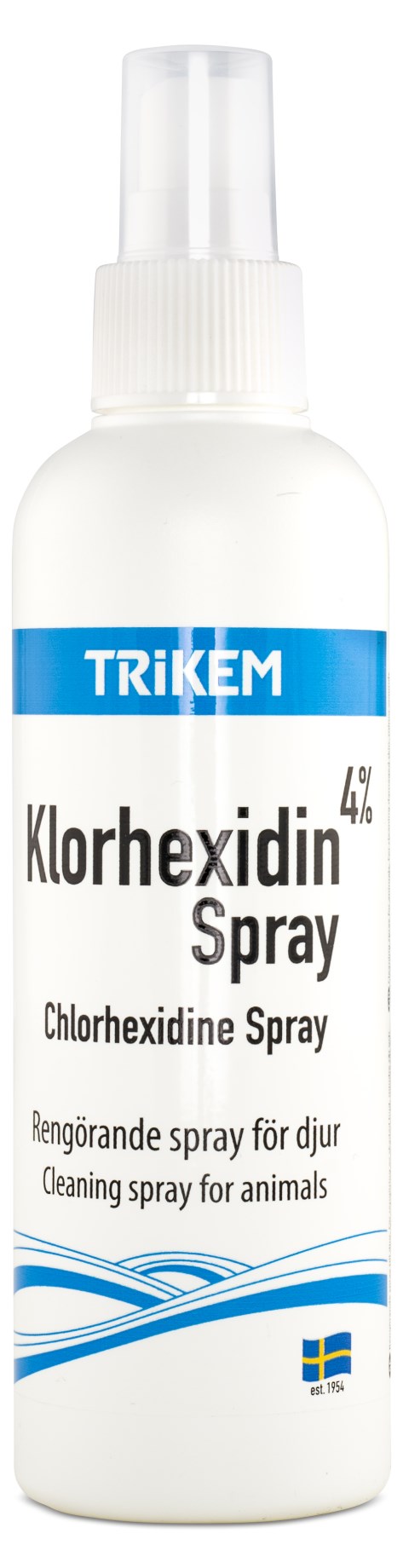 Trikem Klorhexidinspray on antiseptinen ja puhdistava suihke hevosille ja koirille, joka sopii pieniin ihovaurioihin tai ihottumiin turkissa ja tassuissa. Suihke on käyttövalmis ja suihkutetaan suoraan vaurioituneelle alueelle ja sen ympärille. Se sisältää kosteuttavia aineita toistuviin hoitoihin.