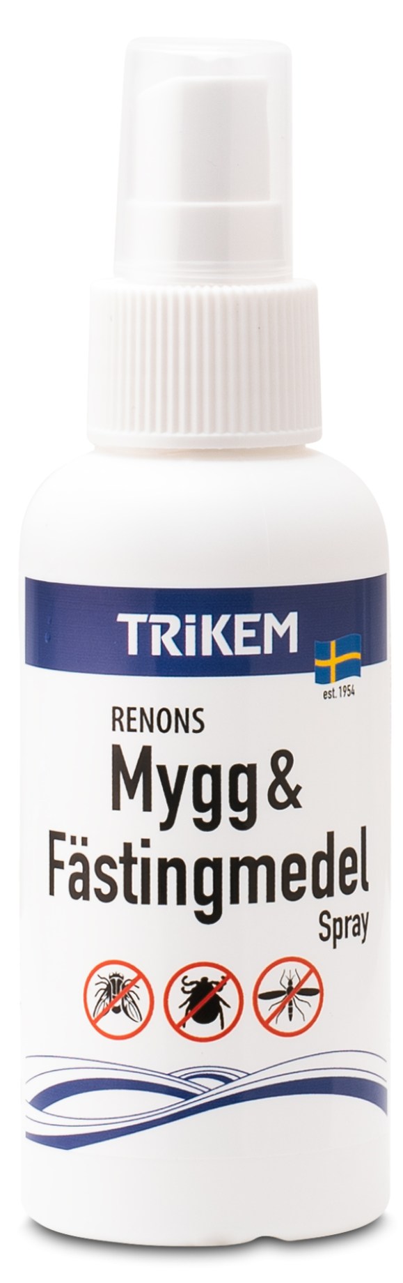 Trikem Renons Hyttys- & Punkkisuihke on suihke, joka tarjoaa tehokasta suojaa punkkeja, kärpäsiä, hyttysiä ja muita purevia hyönteisiä vastaan. Suihke sisältää 20 % ikaridiinia, joka antaa pitkäkestoisen suojan jopa 24 tunniksi. Sisältää myös propyleeniglykolia, joka estää kuivumista. Neste on väritöntä ja siksi lempeä varusteille. Alhainen ympäristövaikutus ja toksisuus! Soveltuu sekä hevosille että ihmisille.