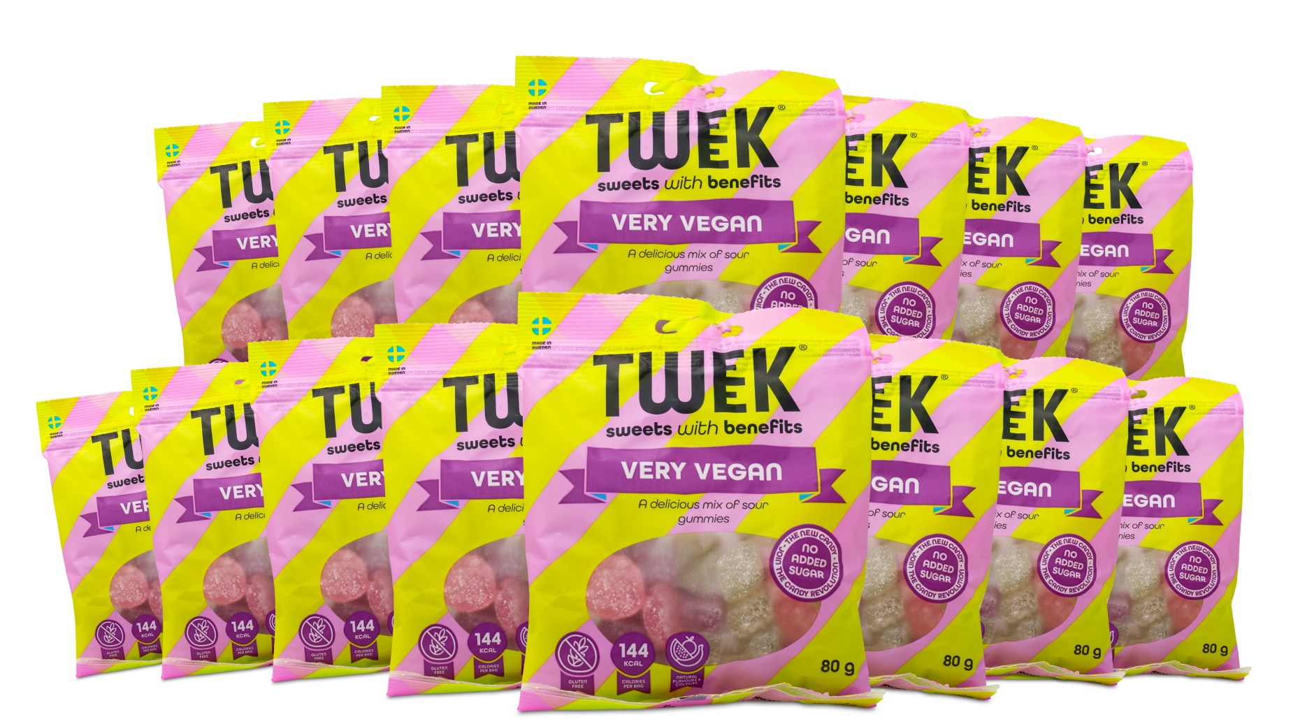 Tweek Gummies Vegan on vegaaninen karkki, jossa on kirpeä makeinen ihanalla hedelmän maulla. Karkki sisältää luonnollisia värejä ja aromeja 95 % vähemmän sokeria. Tweek on täydellinen, kun haluat hemmotella itseäsi jollakin hyvällä, mutta haluat vähemmän sokeria ja vähemmän kaloreita.