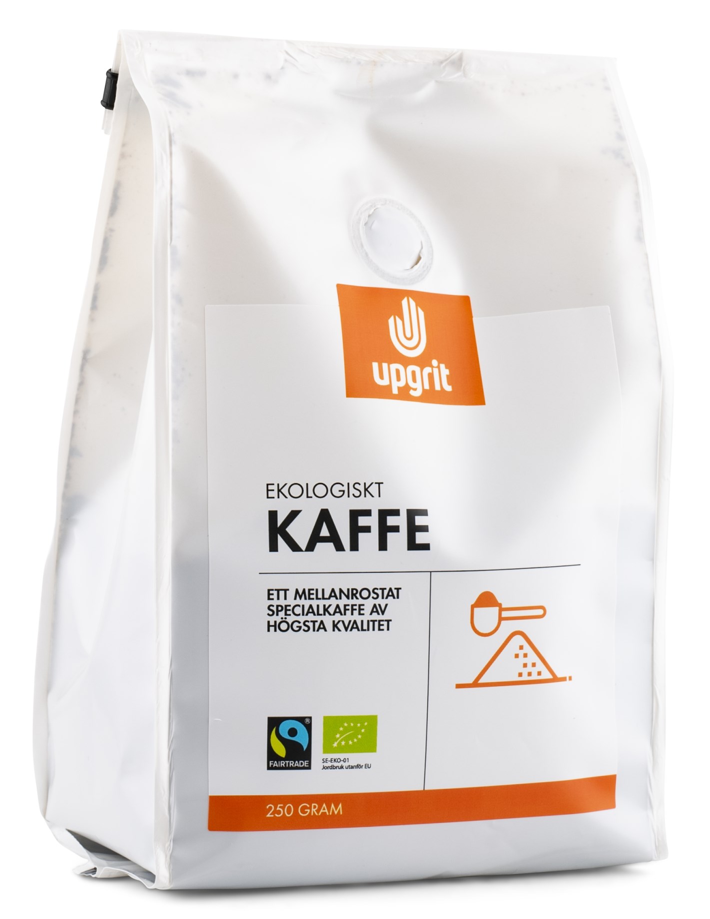 Upgrit Organic Coffee keskipaahtoinen luomukahvi, joka menee tummempaan suuntaan karamellin, omenan ja mantelien vivahteilla. Upgritin kahvi on huolella valittu, jotta se säilyisi korkealaatuisena, mikä tarkoittaa, että se on jäljitettävissä ja raaka-aineestaan ??välittävien ihmisten viljeleminä, asianmukaisissa olosuhteissa. Upgritin kahvi valmistetaan ns. pesuprosessimenetelmällä, joka auttaa minimoimaan mykotoksiinien muodostumisen. Pavut ovat Arabica-papuja, jotka tulevat joko Cuscosta Perussa tai Ocotopequesta Hondurasista vuodenajasta riippuen. Nauti kupillinen tätä upeaa luomukahvia!