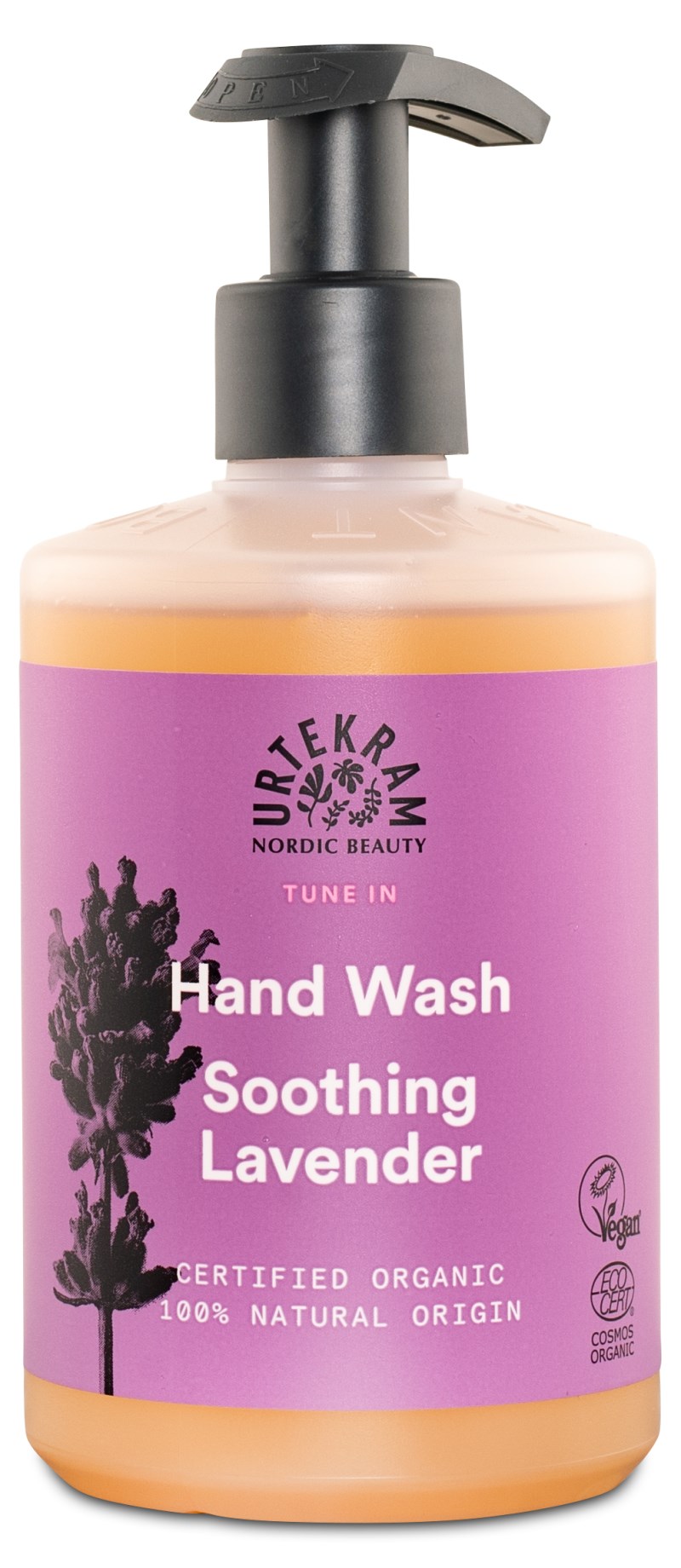 Urtekram Tune in Soothing Lavender Hand Wash on hellävarainen ja puhdistava saippua käsiillesi. Aloe vera ja luonnolliset öljyt kosteuttavat ihoa ja tekevät käsistä pehmeät ja puhtaat. Käsisaippualla on ihana laventelin tuoksu ja se on vegaaninen!