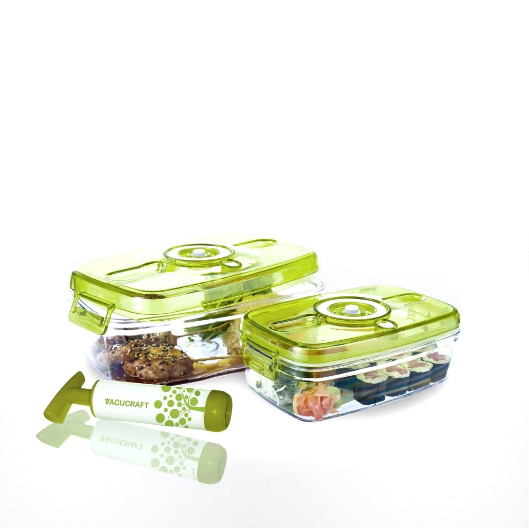 Kahden säiliön sett Vacucraftilta on setti, joka sisältää kaksi käytännöllistä erikokoista tyhjiöastiaa. Käytä ruoan säilytykseen tai kätevinä eväslaatikoina. Tyhjiötoiminto pidentää säilyvyyttä jopa viisinkertaiseksi, mikä voi auttaa sinua vähentämään ruokahävikkiä. Säiliöt on valmistettu kestävästä, BPA-vapaasta Tritan-muovista, ja kannen päivämäärän ilmaisin tekee lisäksi helpoksi seurata, kuinka kauan ruoka on ollut säilytyksessä.