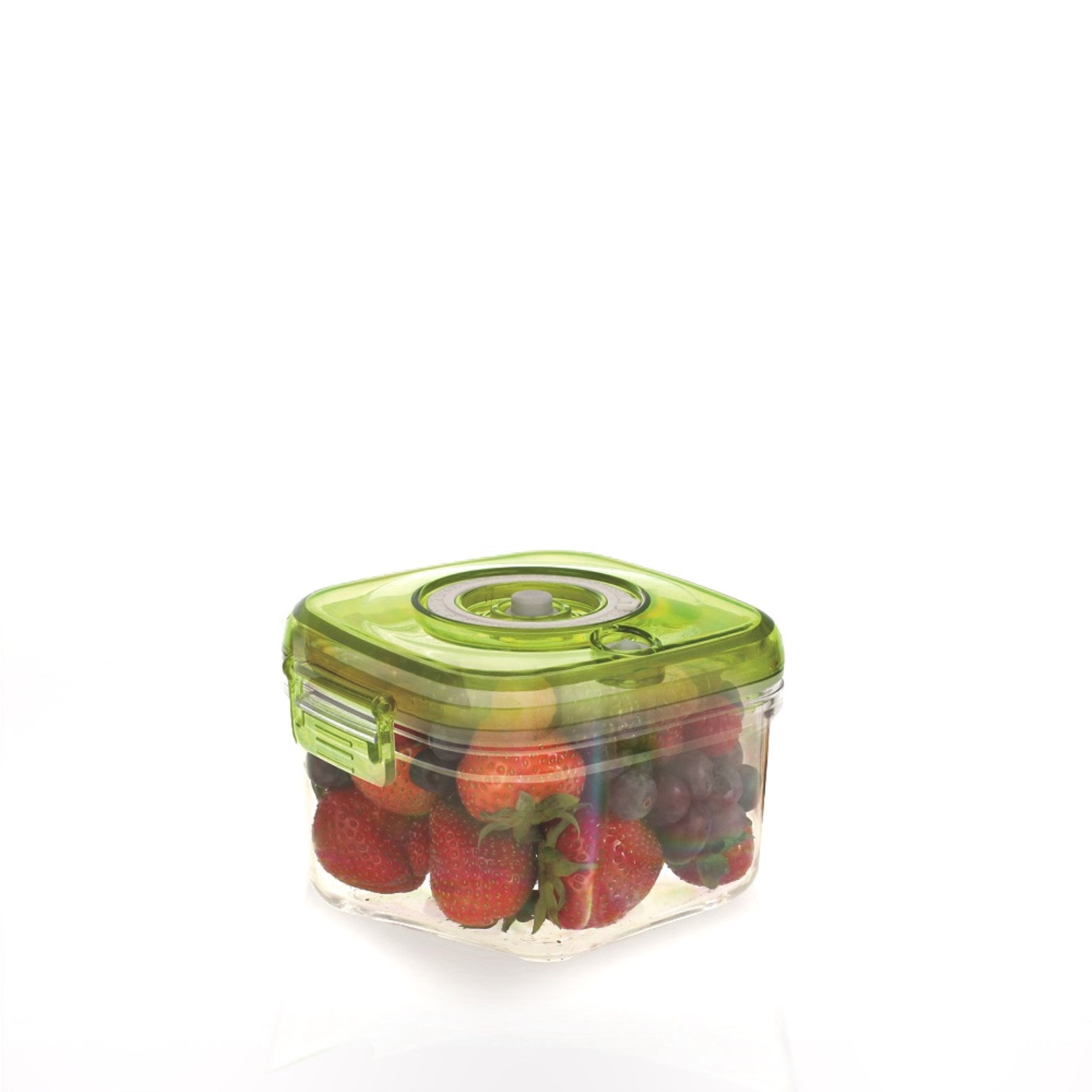 Pidennä ruoan säilyvyyttä Vacucraft säilytyssäilytysrasialla + pumppulla. Vacucraftin innovatiivinen säiliö pidentää elintarvikkeiden säilyvyyttä jopa viisi kertaa poistamalla ilmaa, joka aiheuttaa bakteerikasvua. Se säilyttää sekä maun että ravintoarvon ja vähentää ruokahävikkiä. Säiliö on valmistettu BPA-vapaasta ja kestävästä Tritan-muovista, ja itse laatikko kestää sekä tiskikoneen että mikroaaltouunin. Kansi kestää tiskikoneen, ja siinä on kätevä päiväysilmaisin. Säiliötä on saatavana kahdessa eri koossa, ja mukana tulee pumppu helppoa käyttöä varten.