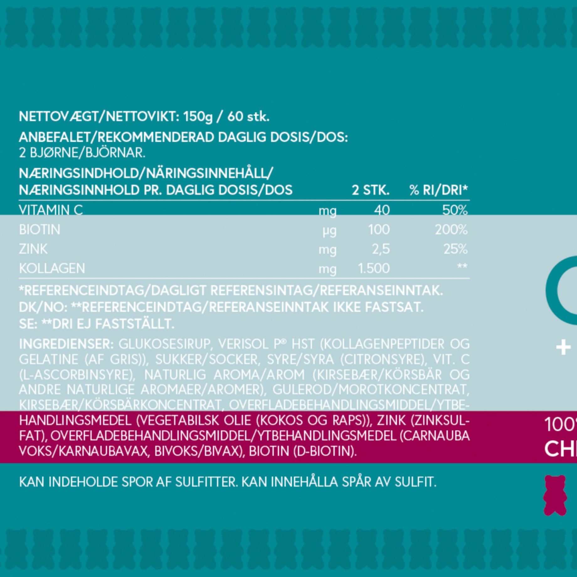 Gummies-nallet kollageenilla, C-vitamiinillä, B-vitamiinillä ja sinkillä